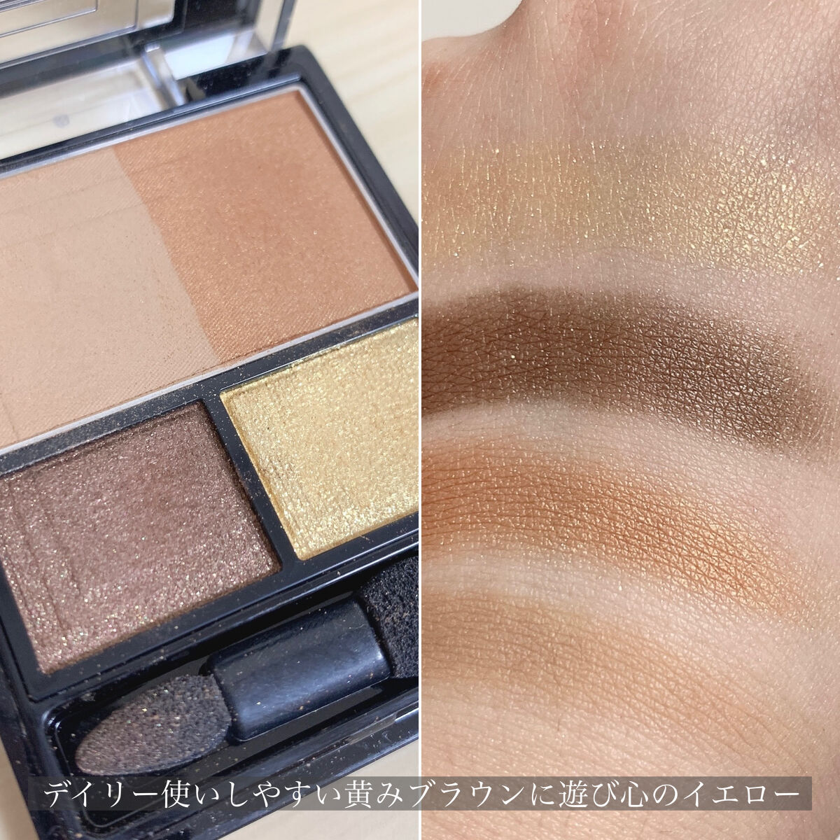 見たまま発色で、明るめのオレンジブラウンシャドウとイエローのラメの組み合わせがとても可愛く、抜け感のある目元にしてくれます😘 締めのブラウンも暗すぎないので、目尻やアイライナーとしても使用しやすかったです! 粉質もしっとりして柔らかく、粉とびも気にならなかったです!✨ 瞼に密着してくれて、ヨレも気にならないです。