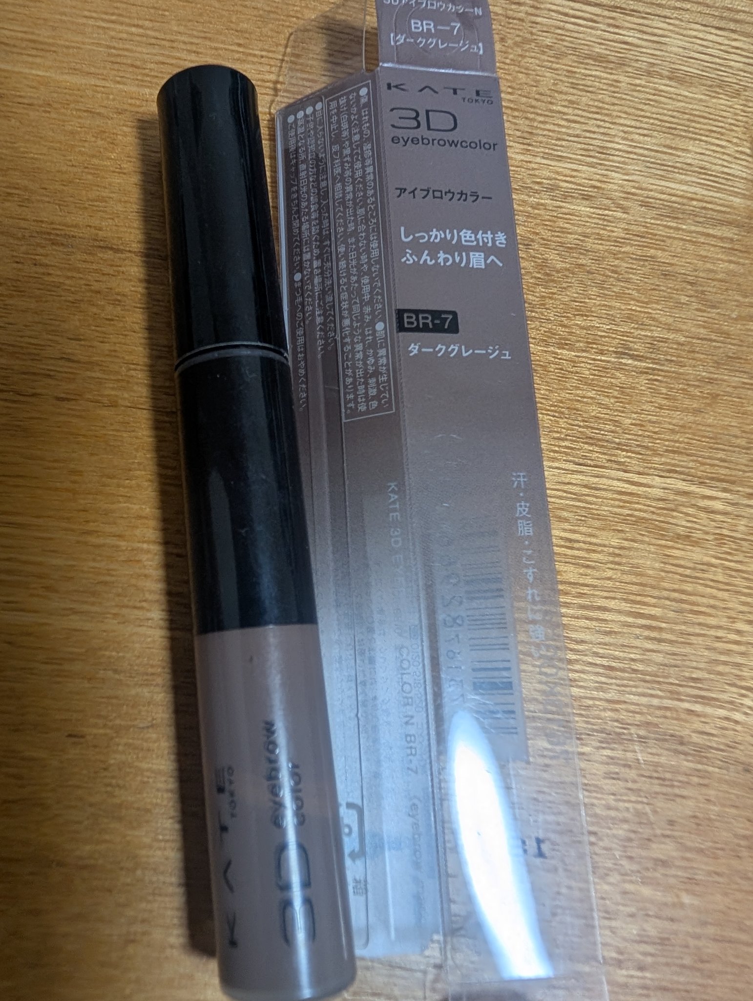 KATE 3DアイブロウカラーN BRー7935円(税込)KATEの眉マスカラは初めて使いますが、ブラシが三角形みたいになっていて地肌にはつきにくいかなと思います色はダークグレージュで黒い眉毛に塗るとほんのり黒さがマイルドになりますただ、自分...