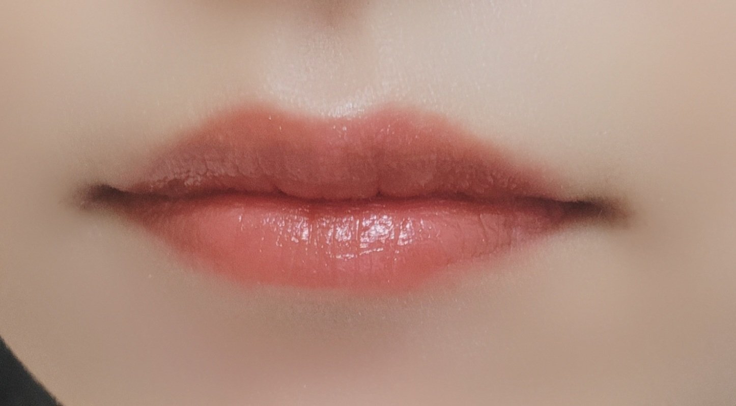 これめっちゃいい色! 家にいる時とかリップ塗るほどでもないなぁって時だけじゃ無く普通におしゃれ過ぎる血色ヌード! リップクリームでこの色は最高🤍 私はしっかり塗ってこのカラーですが、うっすらでもちゃんとカラーが乗るからじゅわっと血色感が出て顔が明るく元気にみえるからすっぴんの時はうっすら塗って、メイクしてる時はしっかり塗る。 そんな感じでON/OFFつかえるリップ😉 買ってよかったー🤍