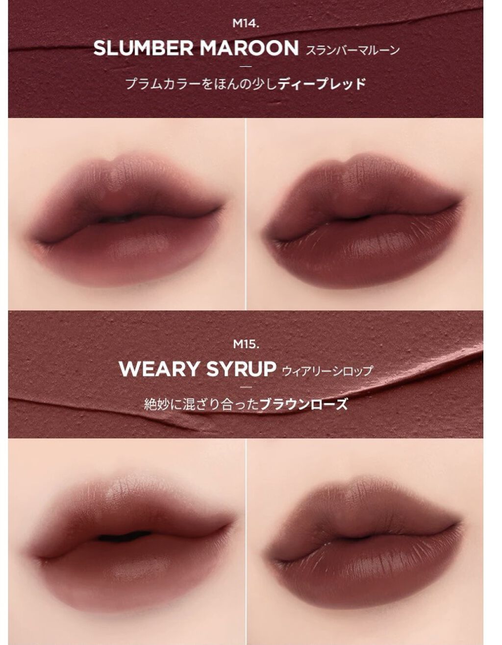 ⛓MERZY🖤ドリーミーレイトナイトメロウティント(M11ピロウトークブリック・M14スランバーマルーン)(1+1)Qoo10メガ割¥1690マージーはダークカラーが多く、秋冬向けのカラーが豊富♥️プチプラなのに他には出せない上品な仕上がりに...