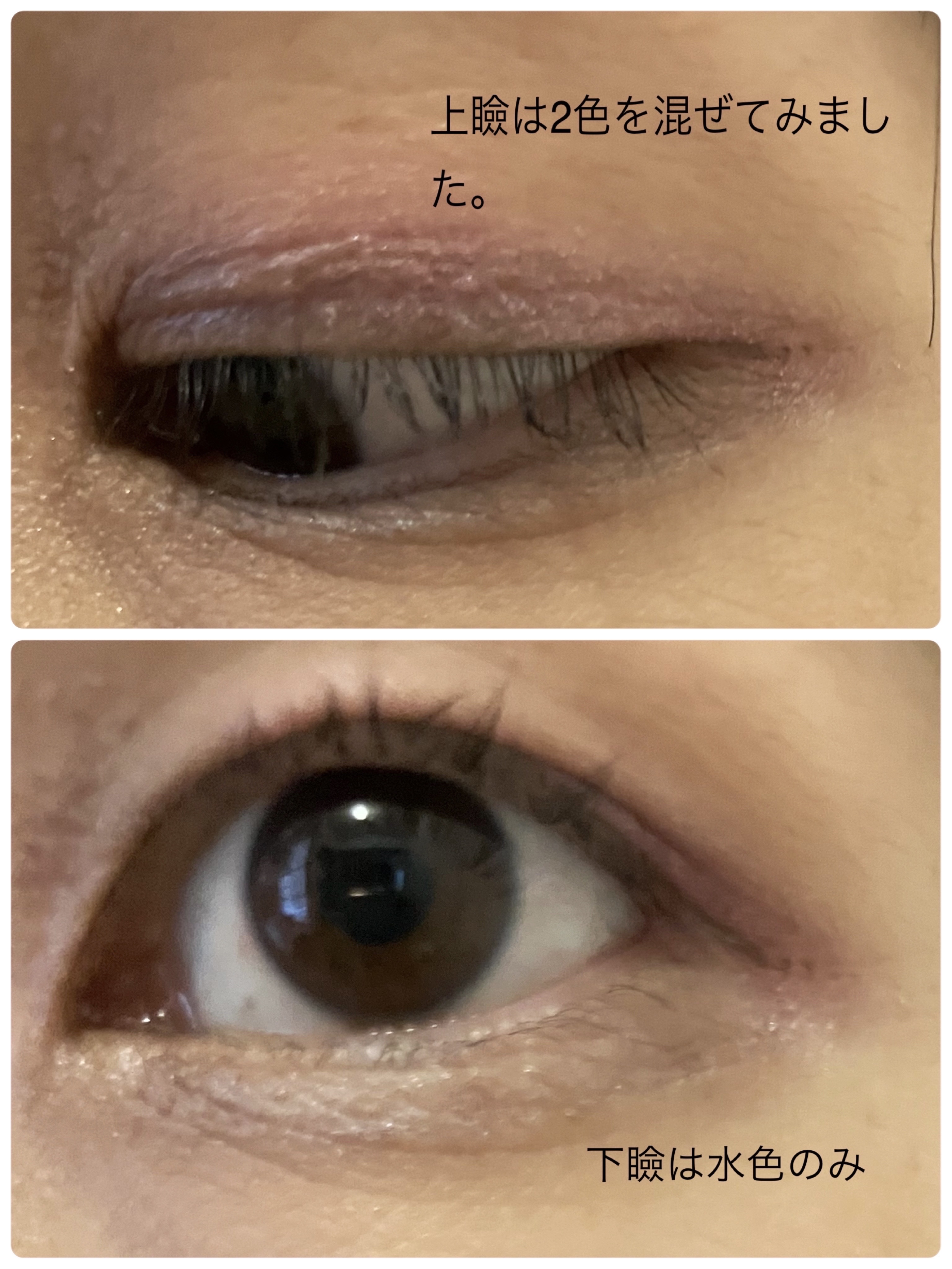 スティック1本に2色のアイカラー入り。 水色とピンクの二色。ほんのりチラチラパール入りです。 まぶたの上ですべらせて時短メイクも叶うよ~ 密着力もまぁ良い方です。 使い方次第でハイライトとチークにも使えるスグレモノです。 ポーチが軽くなるのでかなり便利。