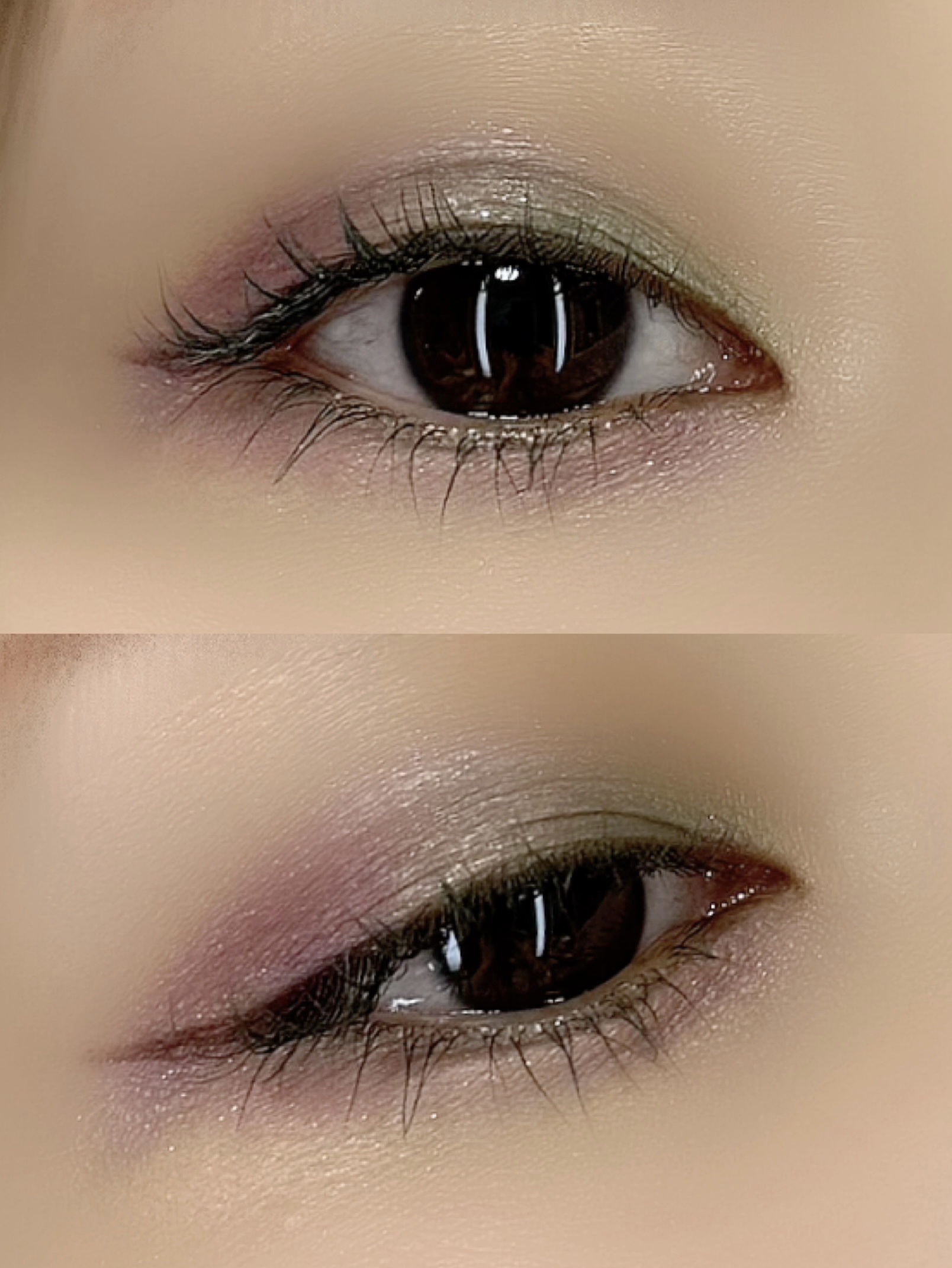 celvoke#インフィニトリーカラーex16まぶた全体に広げる。 to/one#ペタルフロートアイシャドウ05緑を二重幅の半分より目頭の方にのせる。 紫を二重幅の半分より目尻の方にのせる。 to/one#ペタルフロートアイシャドウ10ベージュを下まぶた全体にのせる。 秋は緑を使いたくなります𓂃 𓈒𓏸◌