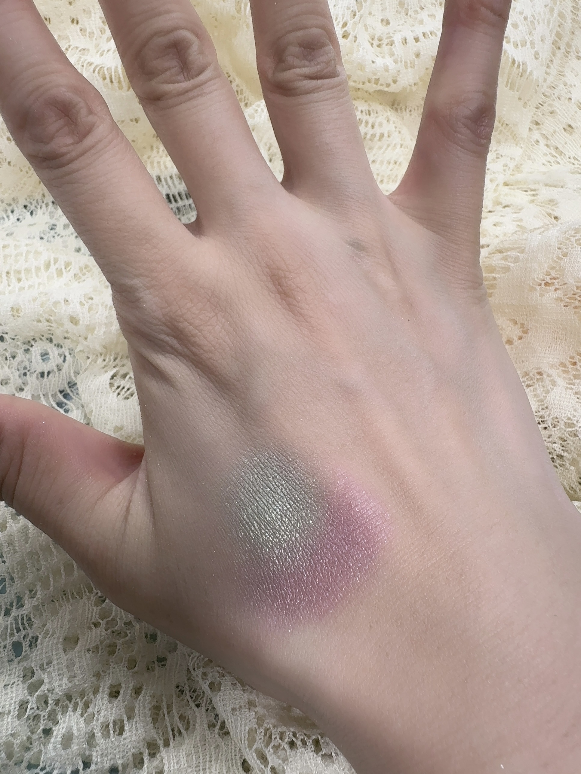 どちらも鮮やかだけどふわっとした色味にパールのツヤ感がとても可愛いです❤️粉質もしっとり細かいのでブラシでふんわりのせたいかな~✨ リップもアイシャドウの儚げな雰囲気にマッチしそうなミルキーピンクを購入しました☺️ このミニサイズの2色アイシャドウ、集めたくなっちゃうね💦