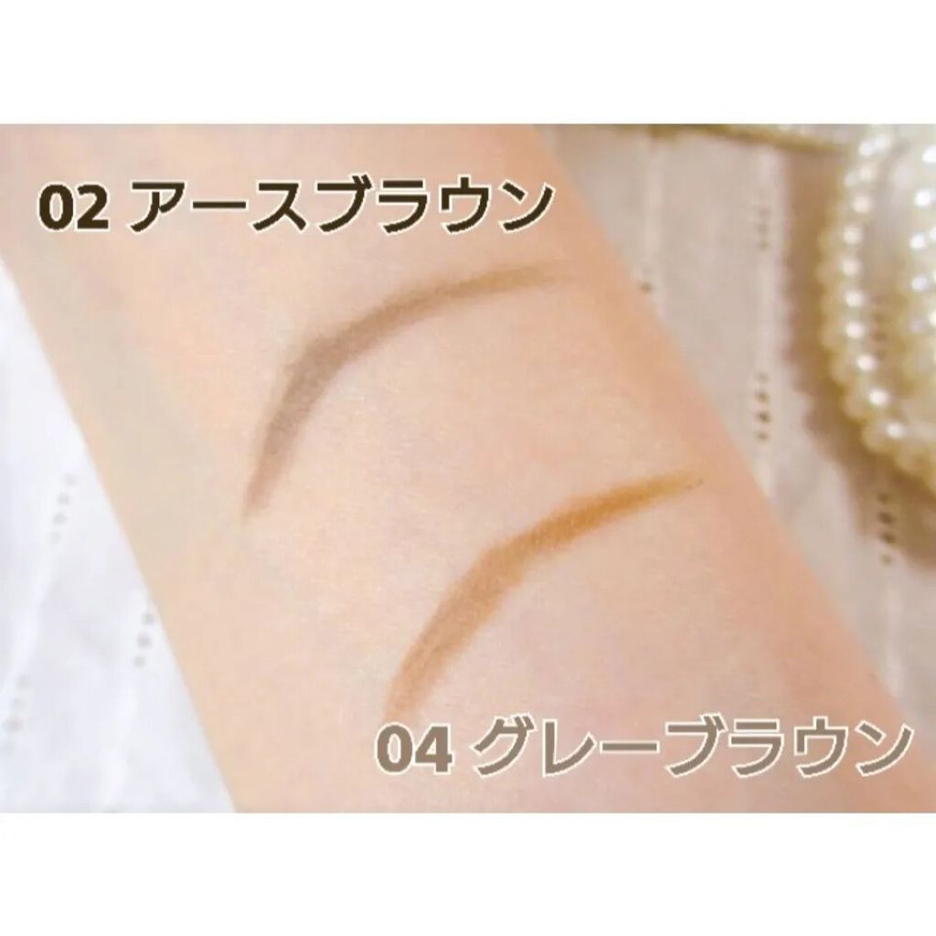程よい硬さのペンシルなのでスルスル描きやすく ペン先が細めなので眉毛1本1本を描き足すように 綺麗に仕上げる事が出来ます✨ 防水タイプなので保ちも良く 綺麗な眉が1日キープできました☺️ 01モカブラウンはブラウン系の髪色の方に 02アースブラウンは暗めの髪色や黒髪さんが使っても垢抜けて良さそう🙆♀️ ブラシも付いていてペンシル自体が細身なので ポーチに入れてお直しにもぴったりです💓