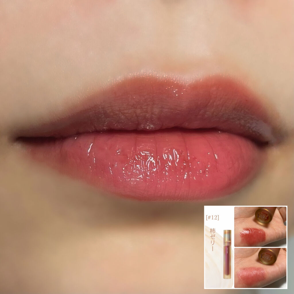 Joocyee フルーツミラーリップグロス は、とっっってつもなくぷるるるんすぎるジューシーなリップグロスなんです❤️🔥 カラー展開も豊富なので自分の好きなカラーを選べるのはもちろん、付け方次第でナチュラルにも仕上がるのでめちゃめちゃおすすめです!!! 沢山の種類豊富の中でも私の1番のオススメカラーは、12番の柿ゼリーです! リップグロスなのでマスク移りはしてしまうのですが、塗りたてから1度ティッシュオフした後また塗り直しして今度は指で馴染ませるとマスク移りはしてしまってもそんなに汚くならないし何よりも1度塗りよりも更にジューシーさが増すので試してみてほしいです! 他のカラーも持っていてめちゃめちゃいいのですが、今回購入した"柿ゼリー"は個人的に断トツで高発色なのに可愛すぎて大優勝でした✨