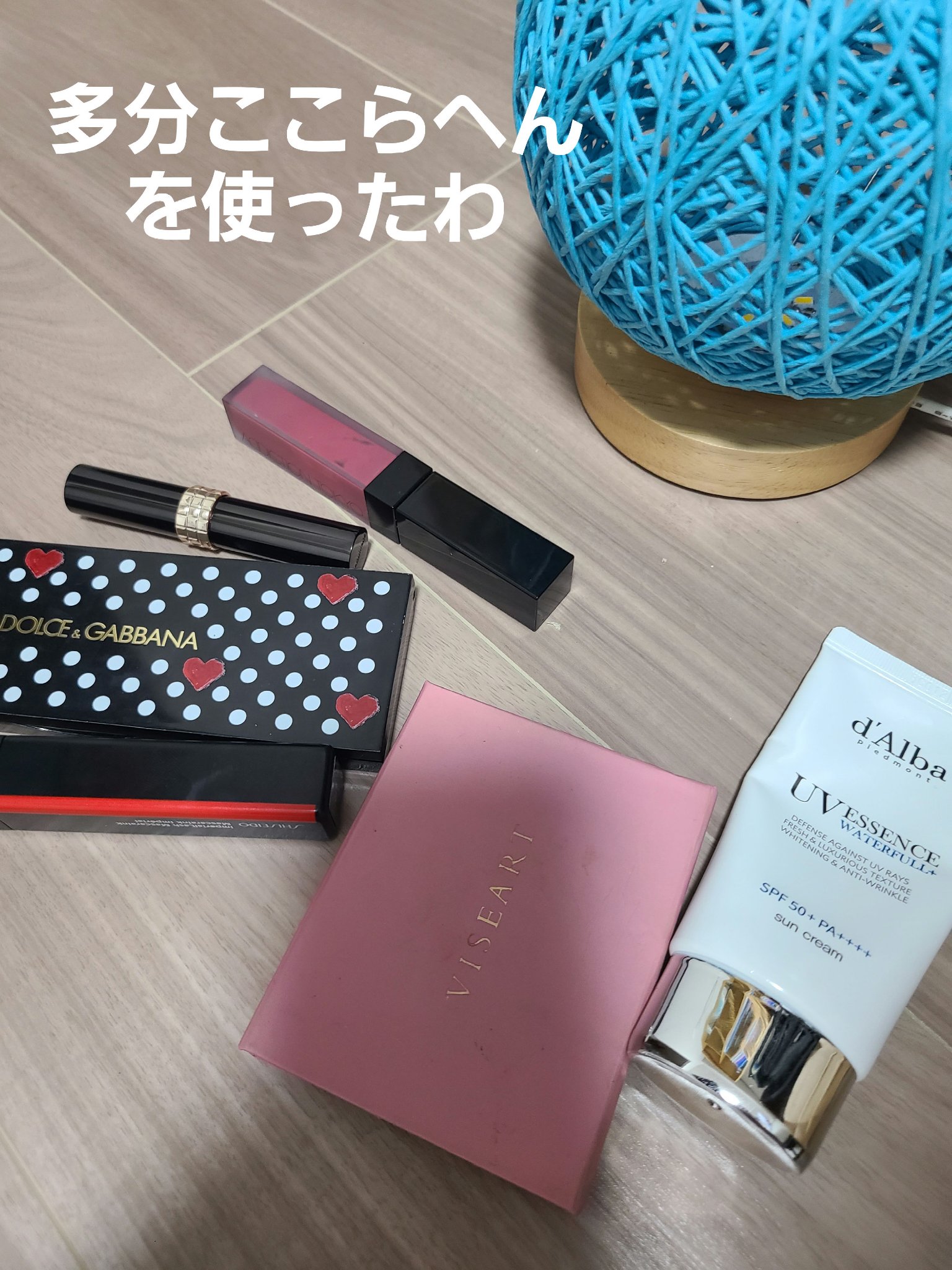 こちらも凄まじく発色いいのに、粉質がよくて❗ 。。底があるのか疑わしくなる。。 わりとヌーディーカラーで顔面のバランスがとりやすい🎵 リップは使うリップ以外は未開封 使用期限内に使いきるために、リップは三本しか開けないぞ‼️