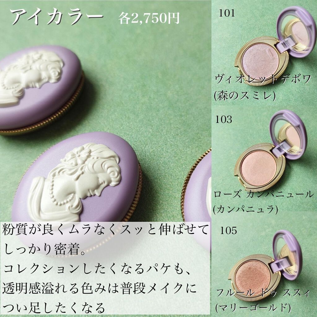♡秋色カメオが美しい #レメルヴェイユーズラデュレ#アイカラー♡美しいカメオが彫られた限定のライラックカラーパケはまさに芸術品連日ラデュレが続いていますが今日はアイシャドウをレビュー✏︎ラデュレ#アイカラー🔻🔻秋の花々にみられるライラックカラーに、メルヴェイユーズのカメオを施した上品な限定パッケージシックでレディ奥行のある輝きを目もとに🔺🔺限定パッケージが美しすぎます…✨ラデュレのコスメは見るだけでテンションあがるものが多いですよね♡ひとつ増えるごとに、ドレッサーがどんどんヴィンテージ仕様になっていく🥀カメオの蓋を開けるとラデュレらしい甘いお花のような柔らかな香りがほんのり今回登場したのはアイカラーは全部で5色101Violettedesbois(ヴァイオレットデボワ)魅惑的な大人の甘さヴァイオレットピンク102Trèfleàquatrefeuilles(トレフルアキャトルフイユ)幸運をもたらすディープグリーン103RoseCampanule(ローズカンパニュール)可憐で繊細なピンクベージュ104Hortensiableu(オルタンシアブルー)儚く神秘的なミスティックブルー105FleurdeSouci(フルールドゥススィ)聖母マリアの黄金の花ゴールドブラウンひとつ2,750円(税込)吟味して2色購入🛒購入カラーは予約してた#103RoseCampanule#ローズカンパニュールこういう繊細なパールピンクが大好物🤤ベースカラーにもってこいな淡い真珠色が使いやすいです紫やピンクのラメが輝いて美しい〜✨色もほんのりピンクなので腫れぼったくならなくて良いですね店頭スウォッチで決めた#105FleurdeSouci#フルールドゥススィ公式サイトだと淡いベージュ系ぽかったんですが実際みると繊細な暖色系のラメがたっぷり入って艶っ艶ブラウンラメが微細なのでシマーな仕上がりで普段使いも◎メインカラーとしてもベースカラーとしても使えそうな万能濡れ感ブラウンです********************人気がありそうだなと思ったのは101、104のパープル系のカラー公式サイトではすぐに売り切れていました😳私もこういったカラー大好きなんですがややブルベ向きなので回避粉質はふわりとしていて広げやすい柔らかさともかく艶感ラメ感が美しい!🥰ラメ飛びは気にならない程度ですが心配な方はアイシャドウベースがあるとより安心ブラシでつけても指でつけても可愛らしくラメがのりますよ(•ω•ฅ).。.:*♡︎ぜひ先日投稿した他の秋コスメと一緒にチェックしてみてくださいね🍁#アイシャドウ#シングルアイシャドウ#単色アイシャドウ#スウォッチ#デパコス#ラデュレ#LesMerveilleusesLADUREE#パケ買い#パケ買いコスメ#お姫様コスメ#秋コスメ#秋コスメ2021#新作コスメ#新作コスメ2021#美容#ラメアイシャドウ#ブラウンアイシャドウ#夏のマストバイ#borotamaラデュレ