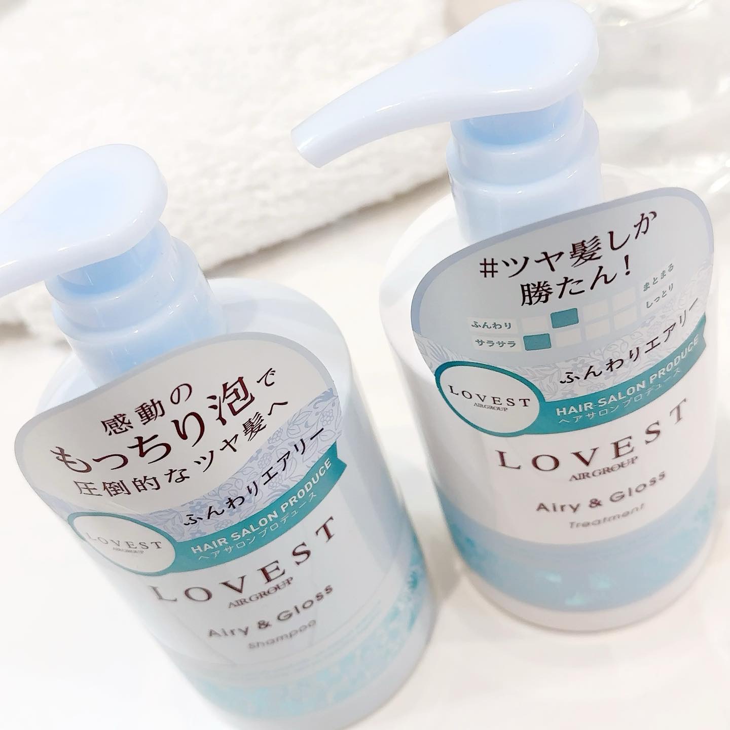 .新しいシャンプー買いました(^^)!LOVESTサロンクオリティーヘアケアエアリー&グロス♡泡立ちの良いシャンプーは、きしまないけどしっかりとした洗い心地!濃密なトリートメントをすれば、指通りが良くて、ふんわりサラサラな髪になります!!うん...