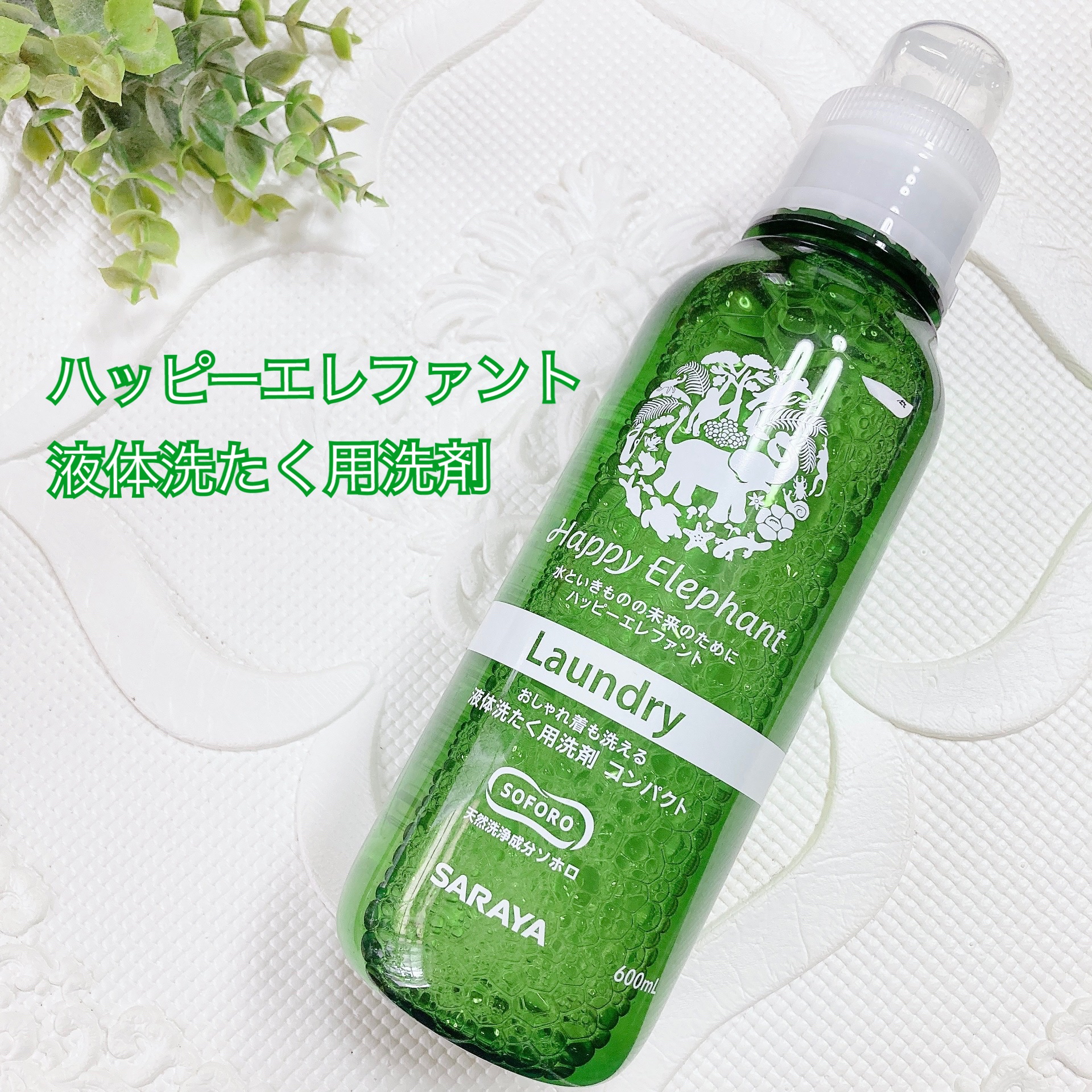 【使った商品】サラヤ ハッピーエレファント液体洗たく用洗剤コンパクトタイプ【商品の特徴】天然酵母で洗う、未来の洗浄剤。排水後は生物によって分解され、すばやく地球に還ります。これ一本でおしゃれ着※も洗える中性洗剤。肌へのやさしさに加えて、衣類の...