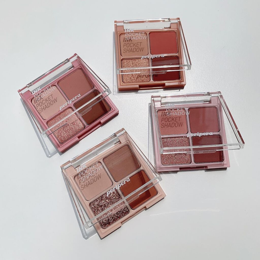 𝙥𝙚𝙧𝙞𝙥𝙚𝙧𝙖INKPOCKETSHADOWPALETTEポケットサイズの可愛いパレット♡既存カラーが4色+新色2色の6色展開🎨既存カラー4色をご紹介♡♥♡01.MylittleBean🤎02.Onceuponapink💗03.BrownFilter🤎04.RoseMoment💗01&03が茶色ベース、02&04がピンクベースのカラー♥ˊ˗個人的には01がお気に入り❣️発色はしっかりだけどラメが細かくてナチュラルな存在感で可愛い♡03のラメだけは他のカラーよりも派手め🍾✨しっかり密着してくれてますఠ͜ఠ⋆꙳#joohky#peripera#ペリペラ#INKPOCKETSHADOWPALETTE#インクポケットシャドウパレット#アイシャドウ#アイシャドウパレット#高発色#高密着#韓国コスメ#韓国コスメレビュー#韓国美容#韓国化粧品#コスメ#コスメ紹介#コスメオタク#コスメ好きさんと繋がりたい#韓国コスメ好きな人と繋がりたい#Qoo10#Qoo10韓国コスメ