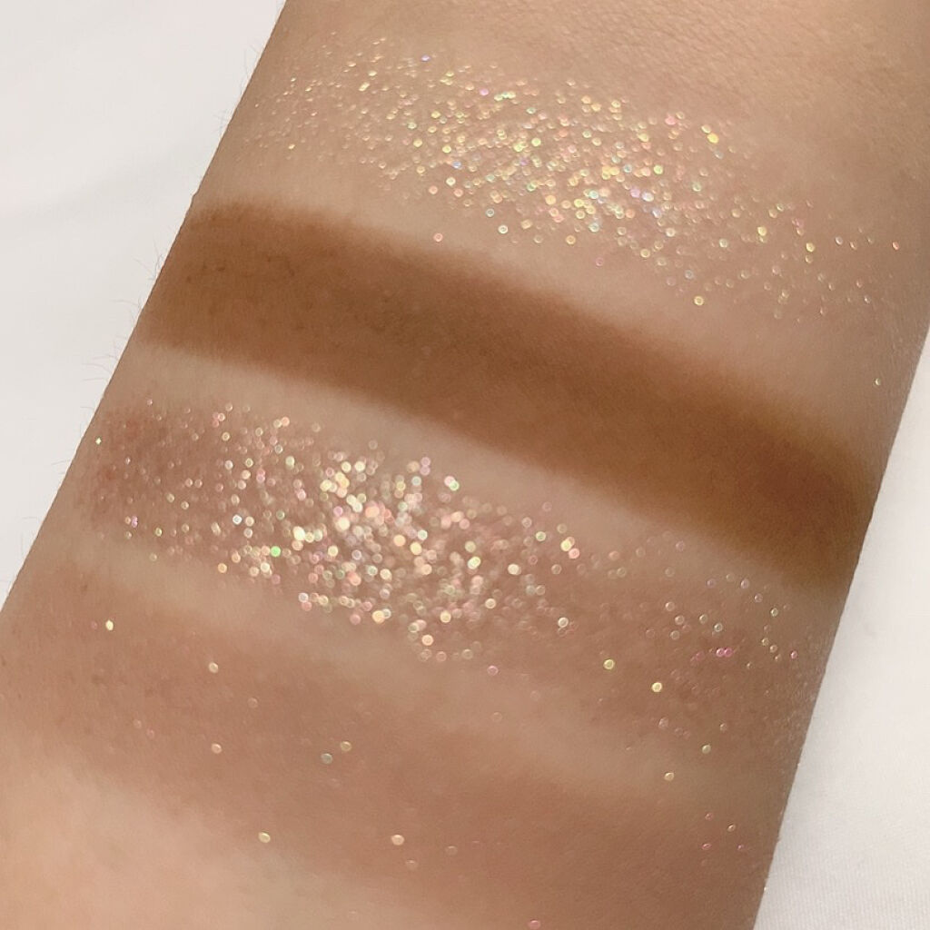 淡め発色のくすみブラウンが可愛い〜🧸🤍🤍 繊細なラメがピタッと密着してうるみ目に見せてくれる🥺 右側の濃いカラーは眉毛にふわっと乗せると統一感のあるメイクが簡単に完成する〜!✨✨