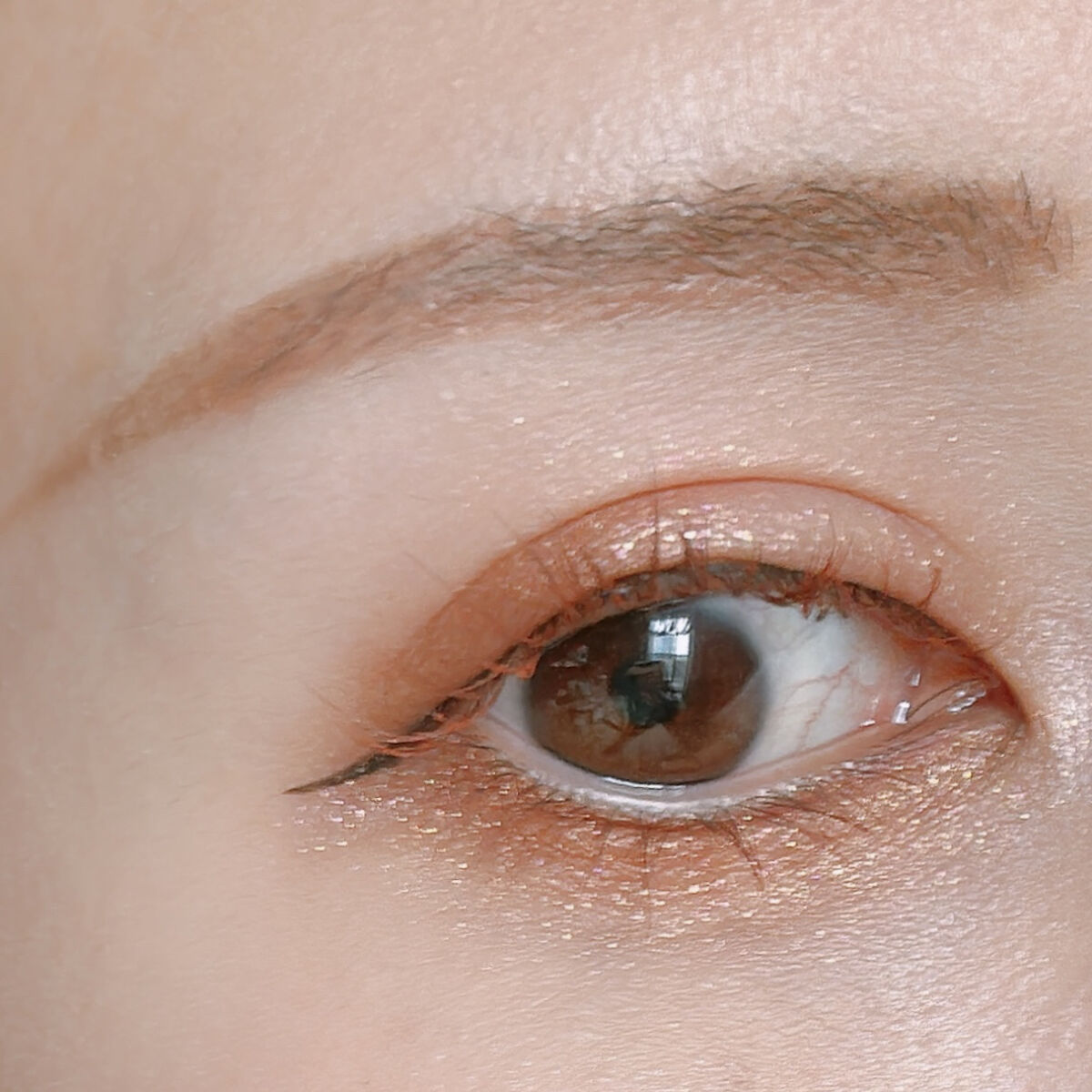 003を愛用しているのですがインナーにオレンジを入れたので合わせるために購入!3枚目の写真のまんま発色まつ毛に乗せても色はほぼそのまま発色が良い分ダマになると目立ちます…きちんとならしたら○