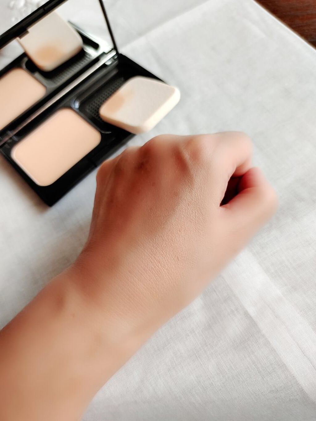 最近脂性肌なのよね… だから思ったよりパウダーって良くてびっくりしちゃった。 ツバキ種子油、チャ種子油、ホホバ種子油、ワセリンも配合されてて、しっとり感丁度いい。 イエベで白い方ではないですが、色味もさり気なくて丁度いい感じ😁