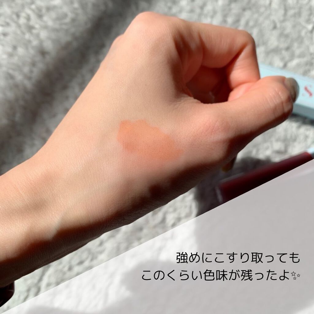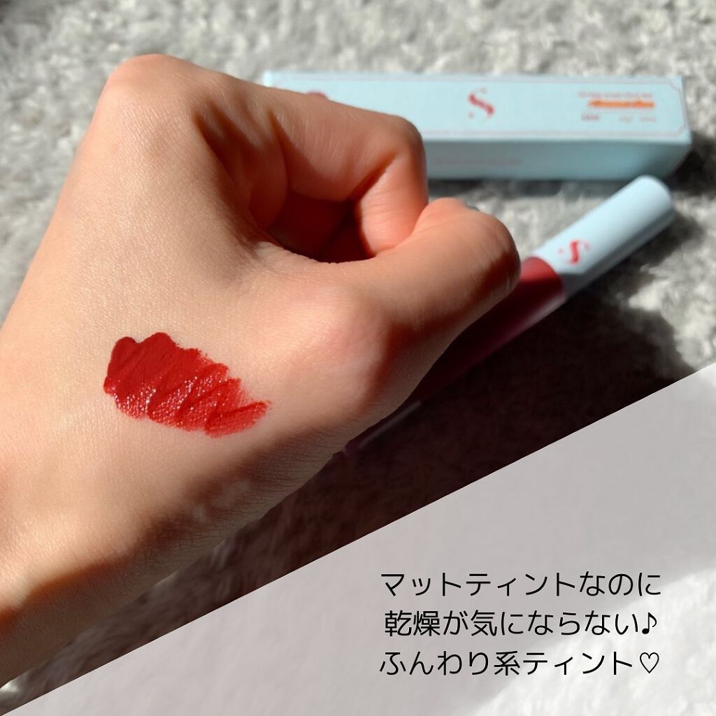 薄づきでも発色がよく、しっかり染まる! 乾燥はそこまで感じない🙆♀️ ちょうどいいセミマットな仕上がりで、 ティッシュオフすればマスク移りも少なめ🌟 サラサラマットなパケも可愛い♡♡ 結構パキッとしたカラーが多めだけど 9AMは1番好みで使いやすかった🤩👍!