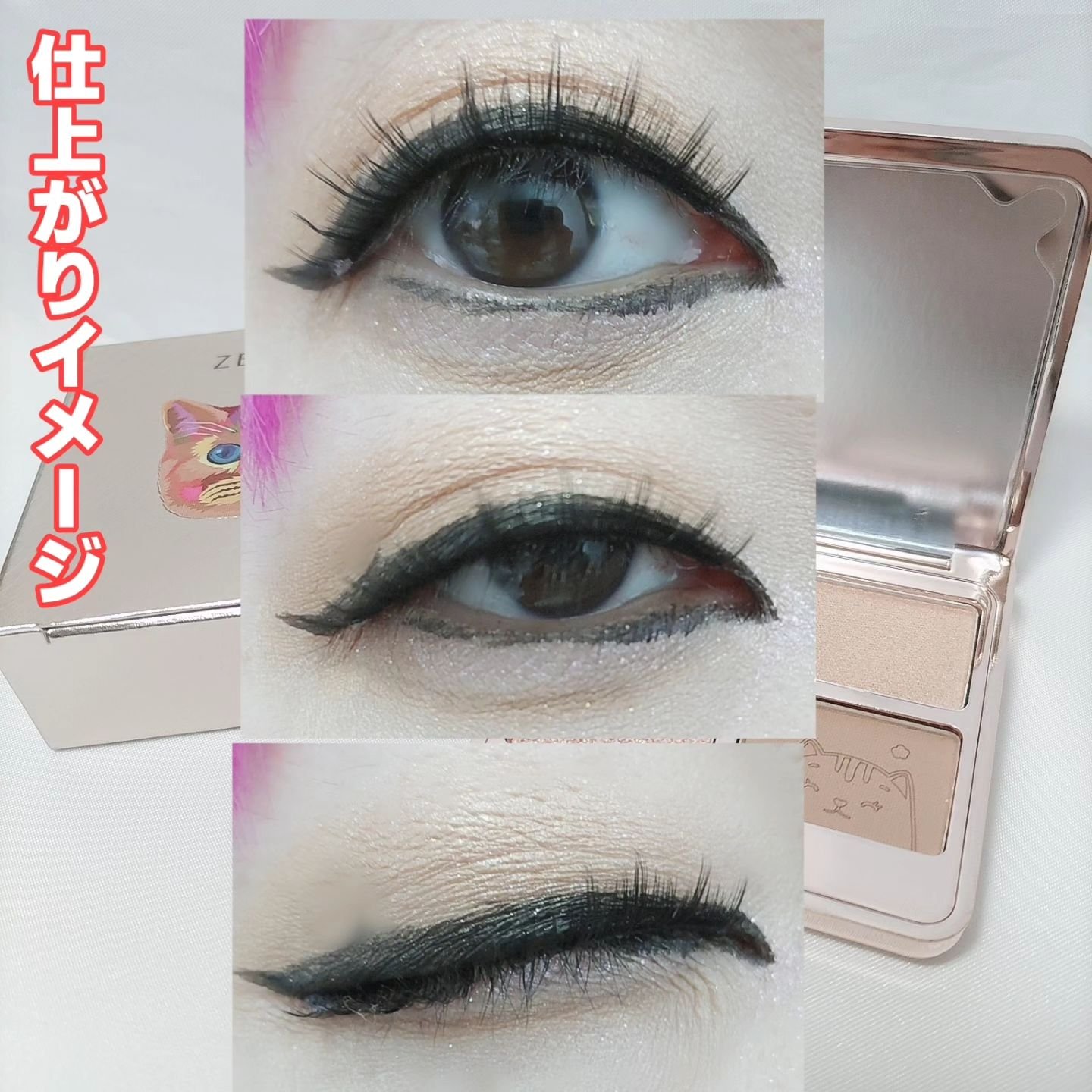 こちらはプレゼント🎁で頂いたものなのですがパッケージがかわいすぎました。中身の蓋の猫もかわいい。中身の猫イラストもかわいい。猫好きには刺さること間違いなしです🐈⬛ ヌーディな薄めのベージュなんですけど、塗って重ねていくといつの間にか盛れるという運びになっていました。ナチュラルながらも目の印象つけたいときにばっちりです。 マットめなので粉飛びせず崩れにくいのも🙆♀️でした🐈⬛ ZEESEAって派手なイメージでしたが使いやすいこういうふんわりカラーもあるんですね🐈⬛🐈