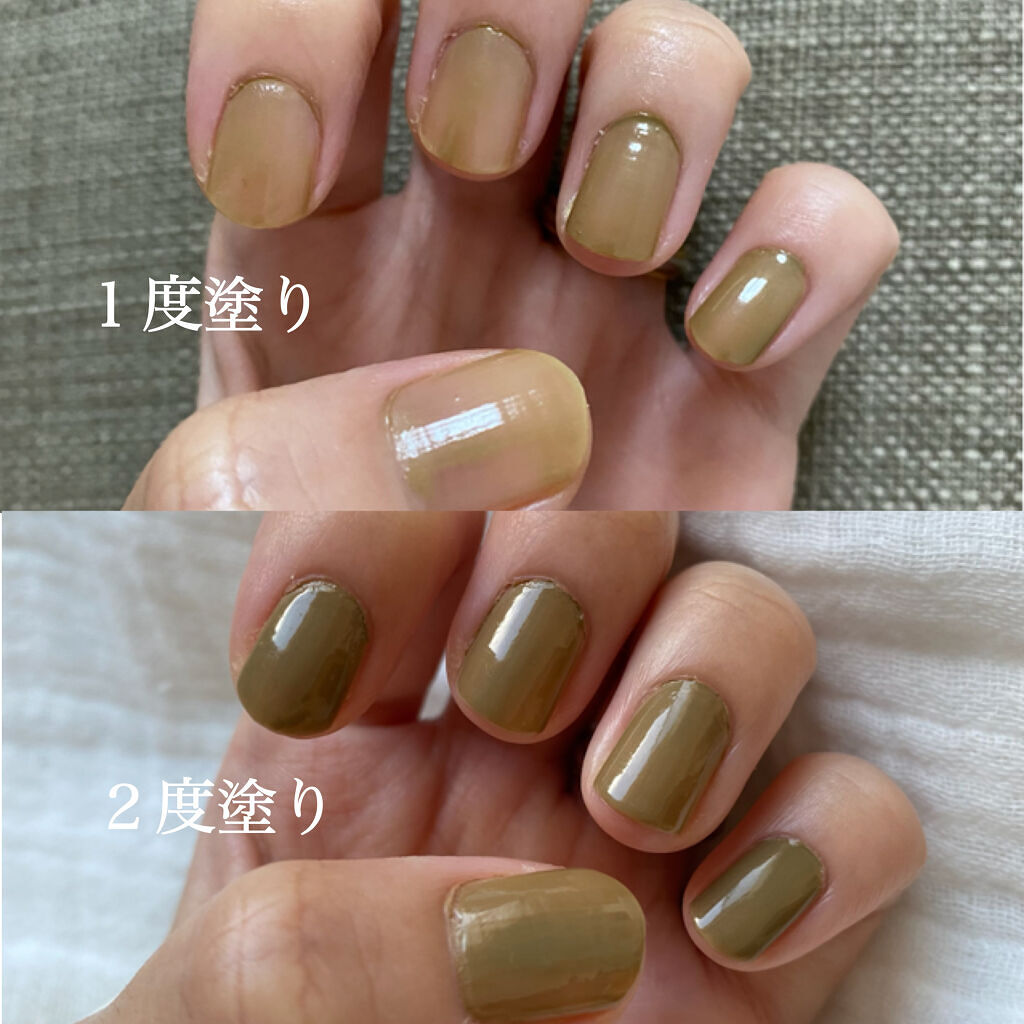 秋冬におすすめなくすみカーキネイル🫒ようやく暑さも落ち着き肌寒くなってきて秋を感じる今日この頃🍂🍁そんな季節におすすめなプチプラネイルのご紹介です🐒久しぶりにネイルカラーを購入したのですが(あまり心ときめくカラーに出会えてなく💦)買って後悔なしの大正解アイテムでした🙈♡【使った商品】キャンメイク/カラフルネイルズ【品番】N56/オリーブグリーン【使用感】秋冬にぴったりなくすみがかったカーキカラー🫒例えるなら本当に品番名でもある通りのオリーブのような色です。カーキカラーって肌と馴染みにくくて苦手意識のある方も多いと思うけど、このカーキカラーはちょうど良い加減でくすみがかってるから肌で浮くことも無く、本当にとっても可愛いカラーです✨私も色浮きが心配で(筆者カーキがとても似合わないので(笑))店頭で発売されてから購入まで何ヶ月も悩みました(笑)結果もっと早く購入していれば良かった…!と思うほど可愛くてすっかりお気に入りネイルに💅CANMAKEさんはいつも¥400未満とは思えないクオリティでとっても可愛いネイルを販売して下さるので、毎シーズンの新作発売がしれっと私の楽しみのひとつになってます✨🥰【良いところ】1度塗り2度塗りで違った雰囲気の仕上がりが楽しめます。1度塗りだと少し透け感のあるシアーな仕上がりなので抜け感のある手元に。2度塗りするとしっかり発色してくれます。秋冬カラーのお洋服との相性も良さそうなのでこれからの季節ひとつ持っておくと重宝してくれそうです✨#カラフルネイルズ#N56#オリーブグリーン#私のベストコスメ2021#あか抜け名品#秋っぽFaceの必需品
