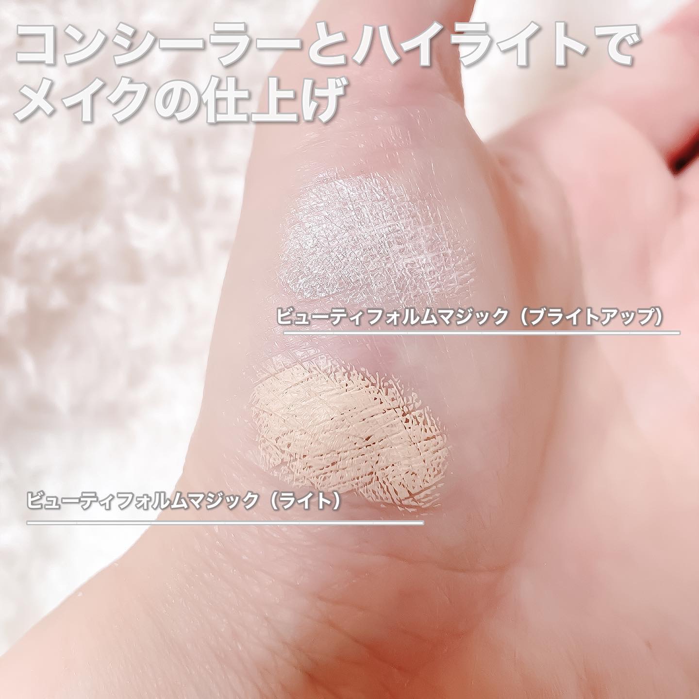 秒でハリ感爆誕ファンデ」✨ こっくりまろやかな付け心地。なるほど〜と思いました😊 ビューティフォルムマジックL(コンシーラー)はするっとなめらかに伸びてくれて高密着。クマがきれいに隠れてくれたので良かったです◎ パール配合でギラギラしすぎず、上品なツヤを感じました✨肌馴染みのいいピンク系のカラーだったので、どんなメイクにも合いそうです💄
