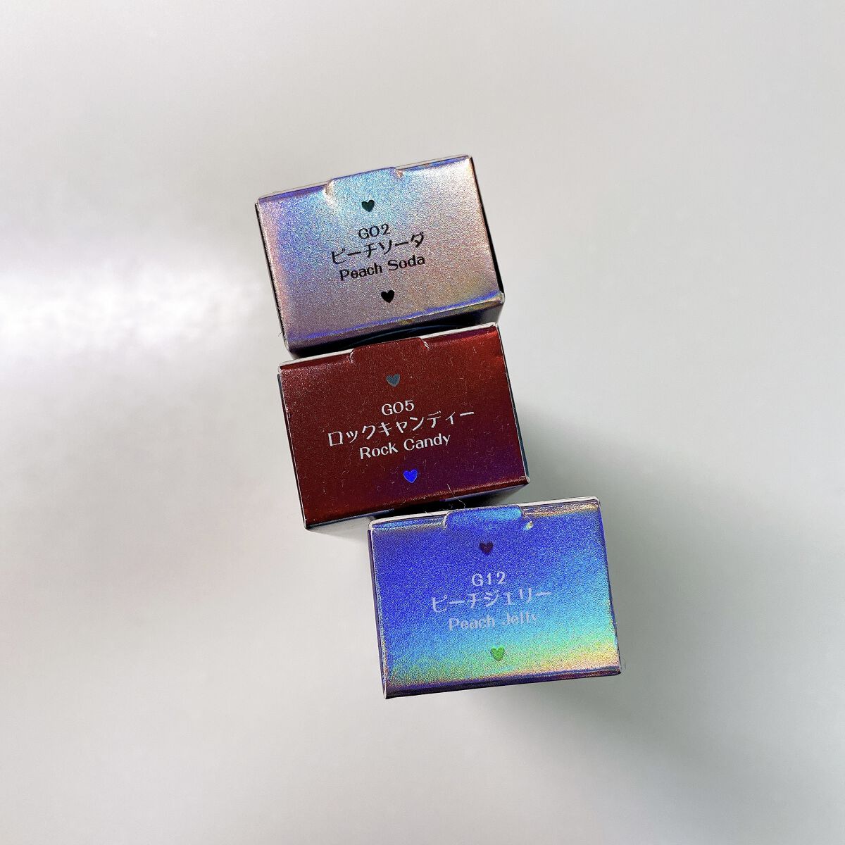 G02Peach Soda G05Rock Candy G12Peach Jelly 魔女のステッキ🧙♀️みたいな ツヤツヤな仕上がりに! わくわくするみためのリップ❤️