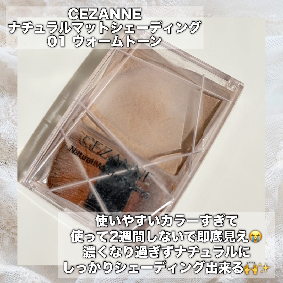 【CEZANNE ナチュラルマットシェーディング】 01ウォームトーン ¥693初めてシェーディングを購入しました。今までは"シェーディング塗りました感"が出てしまうのでは?思っていたんですが、口コミを見てナチュラルマットシェー...