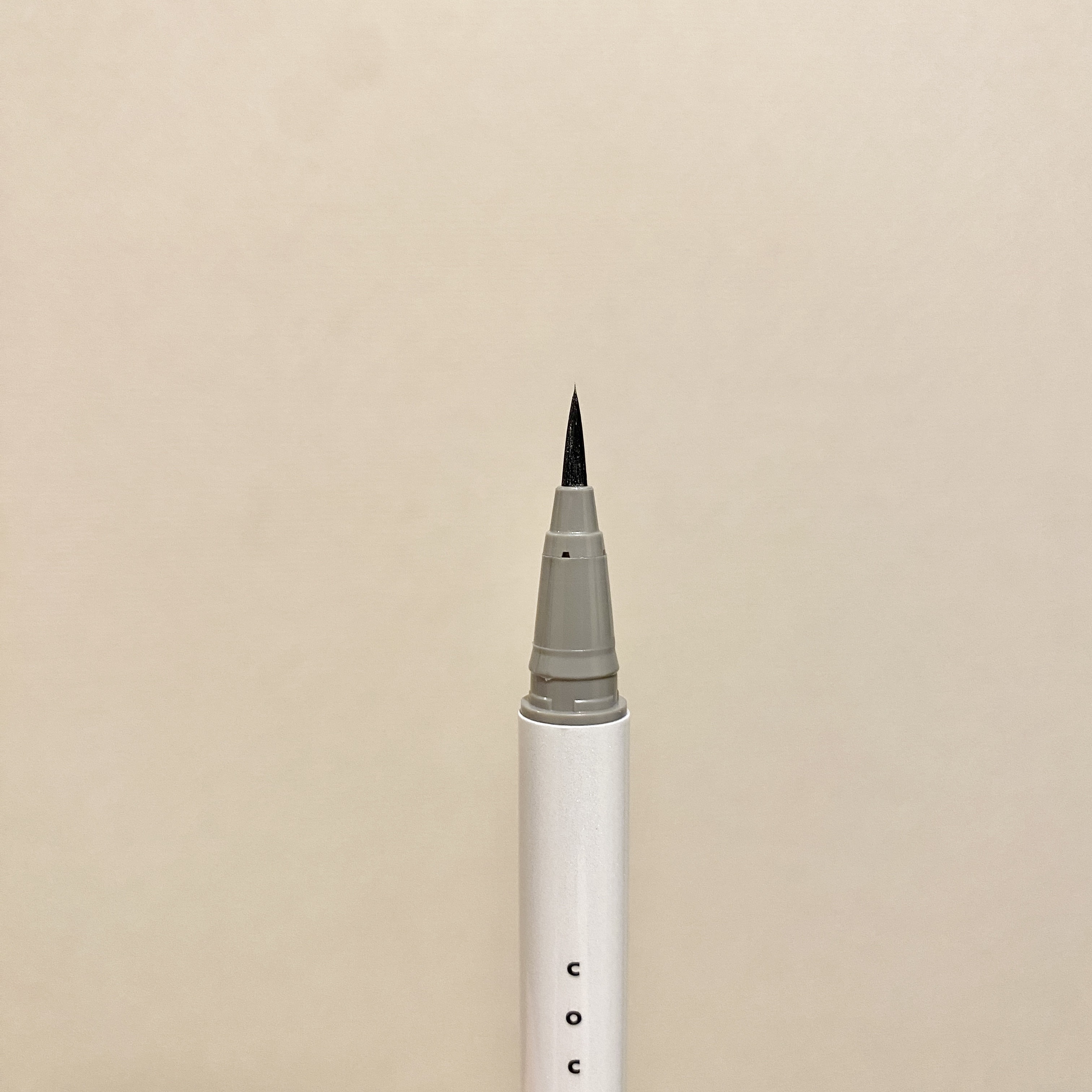 黒よりも薄く抜け感のあるカラー。 キツくなりすぎ自然で私はとても好みです❤️ 2度塗りすると濃いめの発色もできて使いやすい! 少しパール感があるけどそこまで目立たないかな。 細い筆で描きやすいです。 ウォータープルーフで落ちにくいけどお湯でオフできます! 派手な色は挑戦しにくいけど自然に垢抜けたい方に凄くおすすめです✨