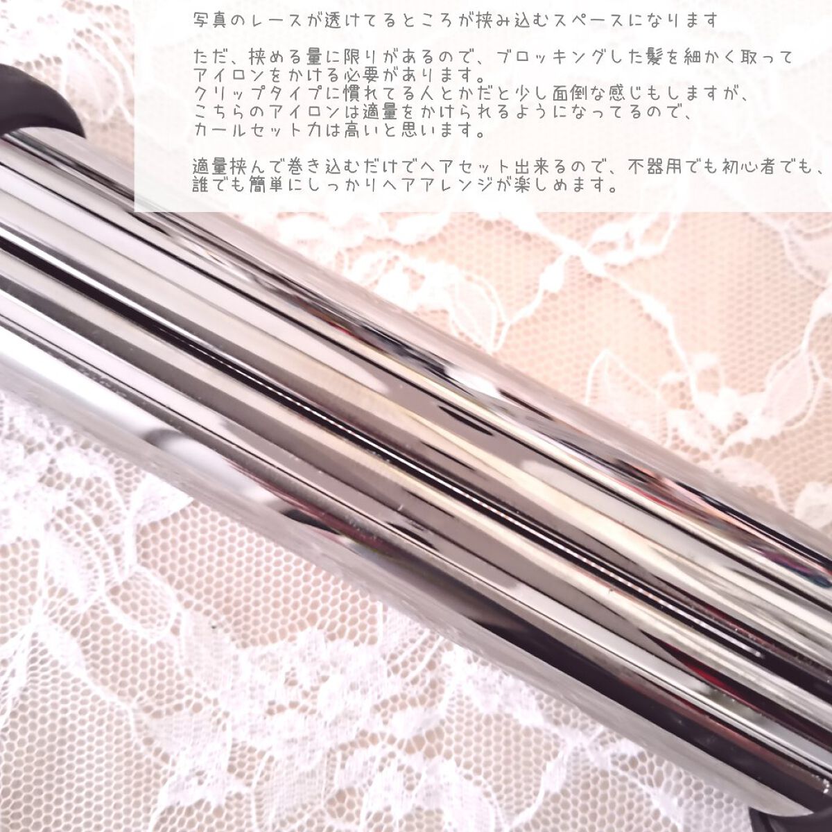 ノークリップ構造なので、パイプのスリットに毛束をはさんで好きな方向にくるくる回すとカールができます☺️❕ 髪をはさんでまっすぐ下ろすとストレートに❄️ カール・ストレート・波ウェーブと色んな髪型を楽しめます◡̉̈♡゙ ノークリップ構造のヘアアイロンは初めてだったので、慣れるまでに少し時間がかかりました⏳ 慣れると素早くカールができ、時短にも繋がりますˆ •͈ ·̫ •͈ ˆ しっかりとしたカールができて、キープ力が高いのも嬉しいです✨ 技術がいらなくて、くるくる回すだけで巻ける所も魅力的ですᵕ ᵕ ෆ初心者さんにもオススメ💓