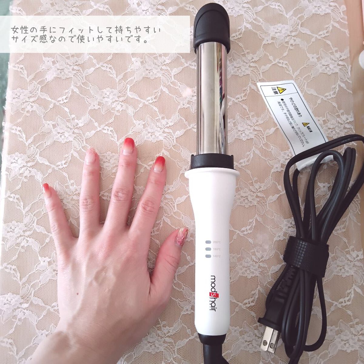 女性らしさ変わりますよね💞 巻き髪で広がるのが好みではないので、 左右両方とも内巻きにしてます 180℃で巻いて、熱をしっかり冷ますだけでスタイリング剤なしで1日巻はとれません! ゆるふわにしたい時は熱が冷める前にヘアオイルをつけてます! 巻きがあまいなーと、途中からヘアアイロンoffに手が当たってしまってる事に気がついてONにしなおしてますorz mod's hairアドバンススマート イージー・カール25mm MHI-2584