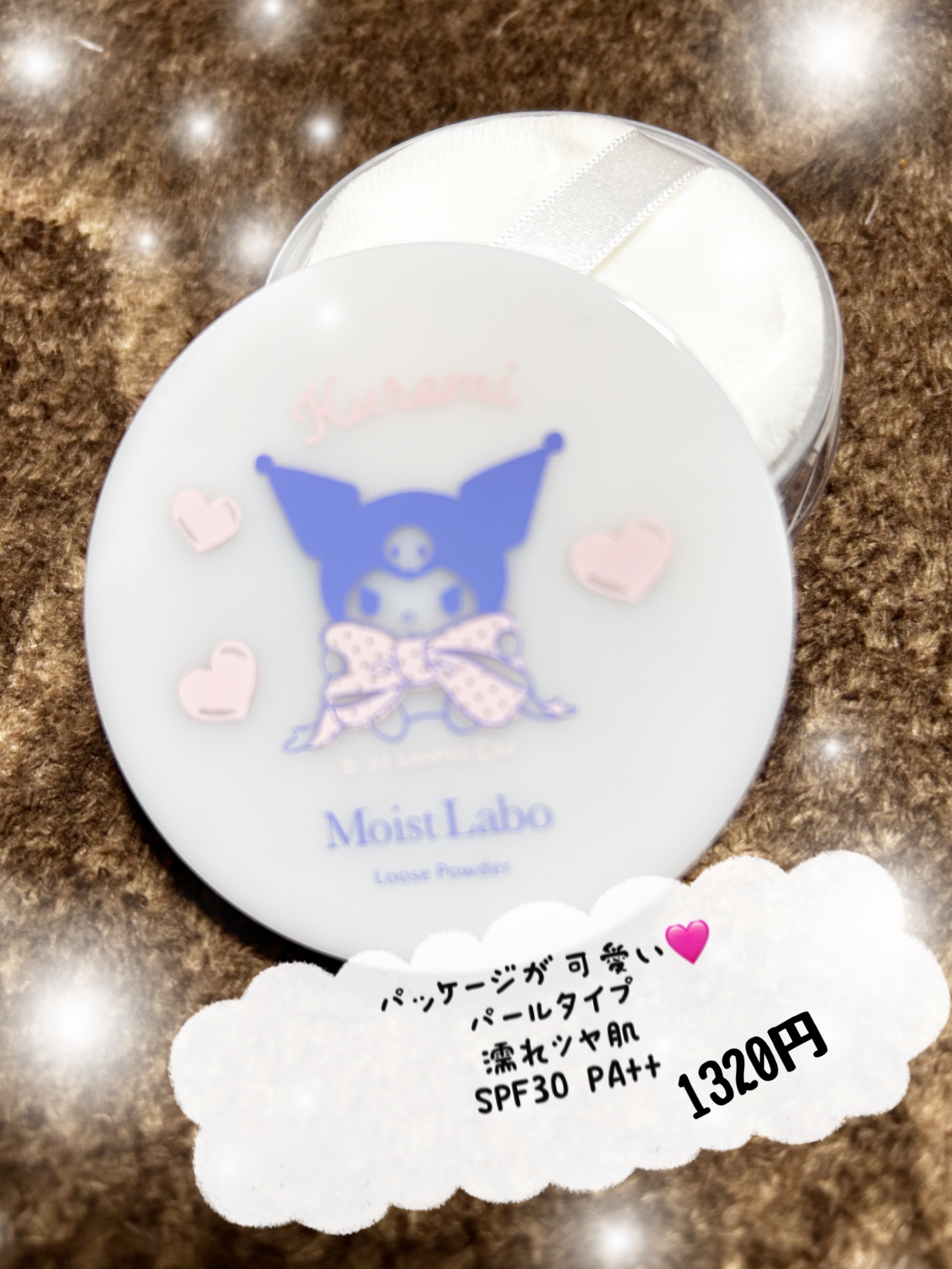 MoistLaboモイストラボルースパウダー10透明パールタイプ 1320円ドンキーで800円だったので購入パッケージにも惚れてしまいました。可愛いクロミちゃん😍サンプルを使ってみて綺麗にカバーしてラメ入りで肌を綺麗にみせてくれたのでよかったかな。毛穴カバー&崩れにくいと洗顔料で落とせるにつられたのもあるけどサラサラパウダーだったのでそれも気に入りました。まだお顔で試してないのでどれくらいラメがお顔でキラキラするか気になるところです。パフはかなりふわふわのモチモチな感じでつけやすいかなと思いますよかったらチェックしてみてください。♡ありがとうございます♪#MoistLabo#モイストラボ#ルースパウダー#フェイスパウダー#毛穴カバー#くすみカバー#濡れツヤ
