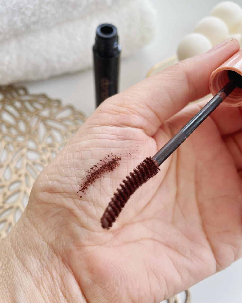 セパレートしやすい! ダマになりにくい! と思ったのが第一印象。 ブラウンは、明るめのブラウンで 抜け感ある目もとに仕上げてくれたよ。 カールキープ力も◎。 お湯で簡単に落ちる点も良かったです。 ピンクのキャップで可愛い。 ブラシは少しカーブしてあって塗りやすかったよ。 まつげ1本1本をきれいにセパレート ナチュラル処方なのに、カールキープやにじみにくさを実現 細部にまでこだわった、先細カーブブラシ 天然由来成分90%以上配合 7つの無添加