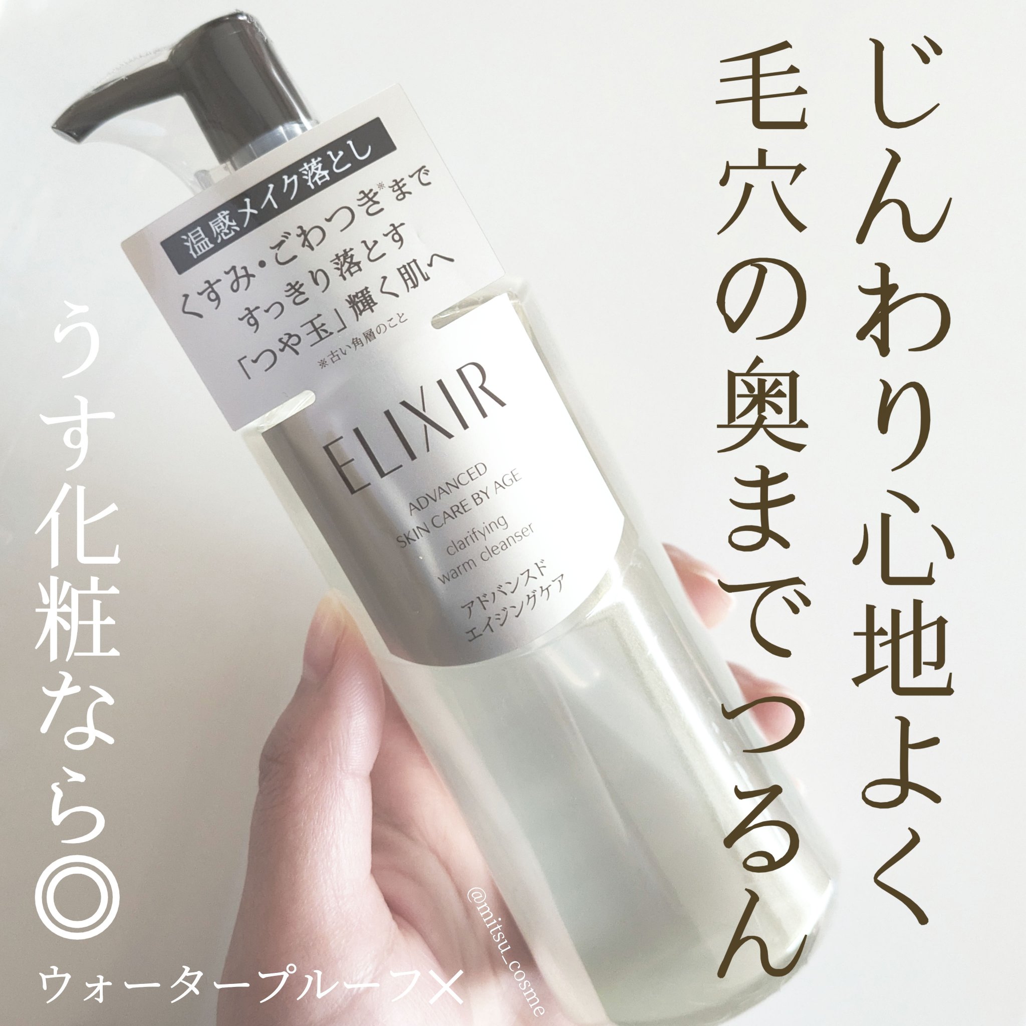 エリクシールにしてみました。結果、良い感じです! 手にとった時は普通なのに、顔につけると温かくて不思議。 ちゃんと落ちるし、洗い上がりも乾燥し過ぎなくて🙆♀️コスパも良さそうです。