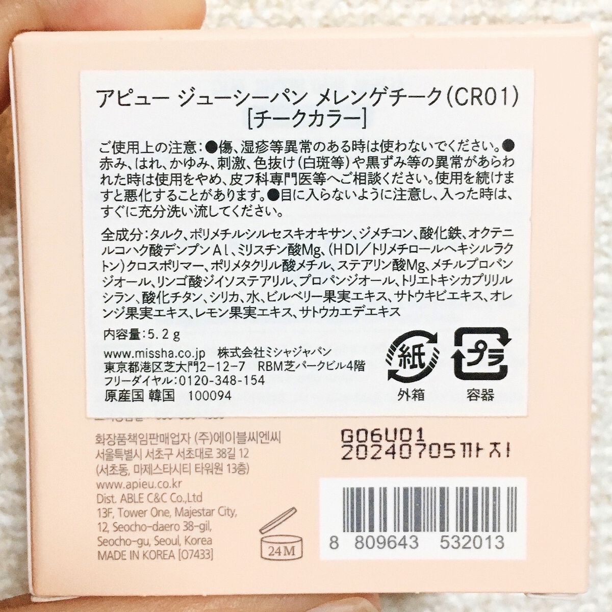 関連する記事A’pieu(アピュー) アピュー ジューシーパン メレンゲチーク CR01 アプリコットメレンゲ