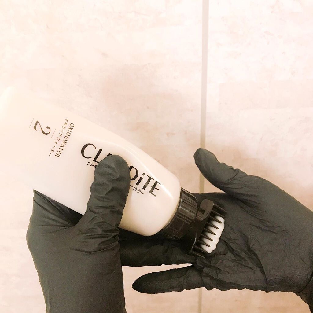 クレオディーテ クリアリーカラーを使ってみた。いつもは泡タイプを使ってるけど、ブラシ型ノズルタイプは、根元に塗りやすい事がわかった。😊これいいかも💕1剤と2剤を混ぜて使います。箱に穴を開けて、動かないようにできるよ驚いたのはプレトリートメント...
