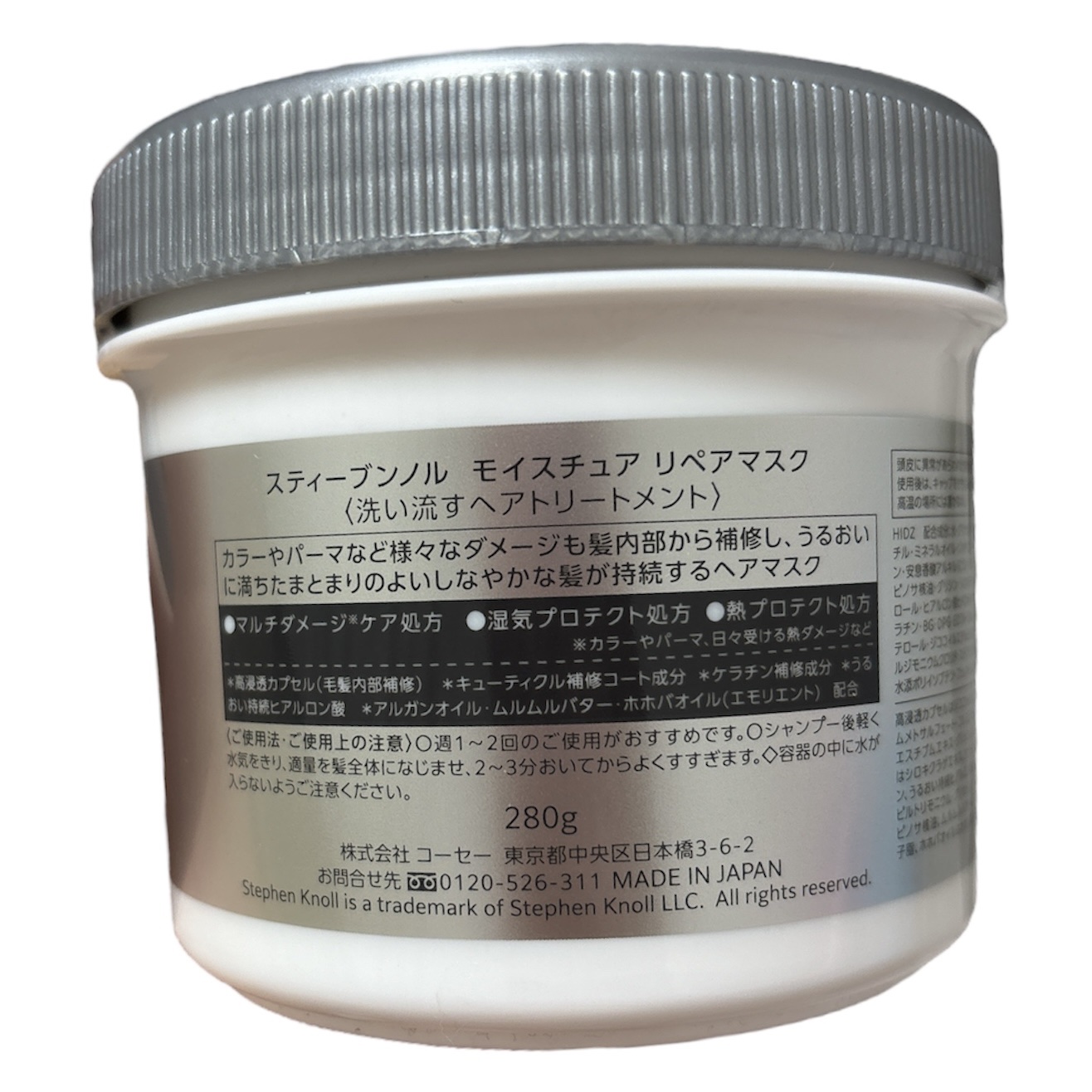 8/21に発売されたスティーブンノルモイスチュアリペアマスクを使っています。こちらは、カラーやパーマ、日々受ける熱ダメージなどを髪内部から補修し、やわらかく指どおりのよい、しなやかな髪が持続するヘアマスク。週に1~2日、コンディショナーの代わ...
