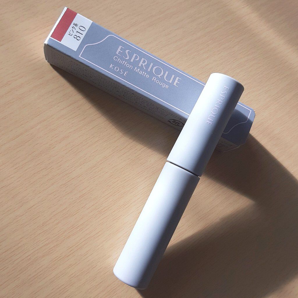 色は810のピンク系の色です。唇に塗りやすそうなチップです。さっと人塗りするだけで色付きがよく、発色がいいのでパッと明るい印象へと導いてくれます。今までマット系のルージュは乾燥しがちなので苦手でしたがエスプリーク シフォンマットルージュは唇の...