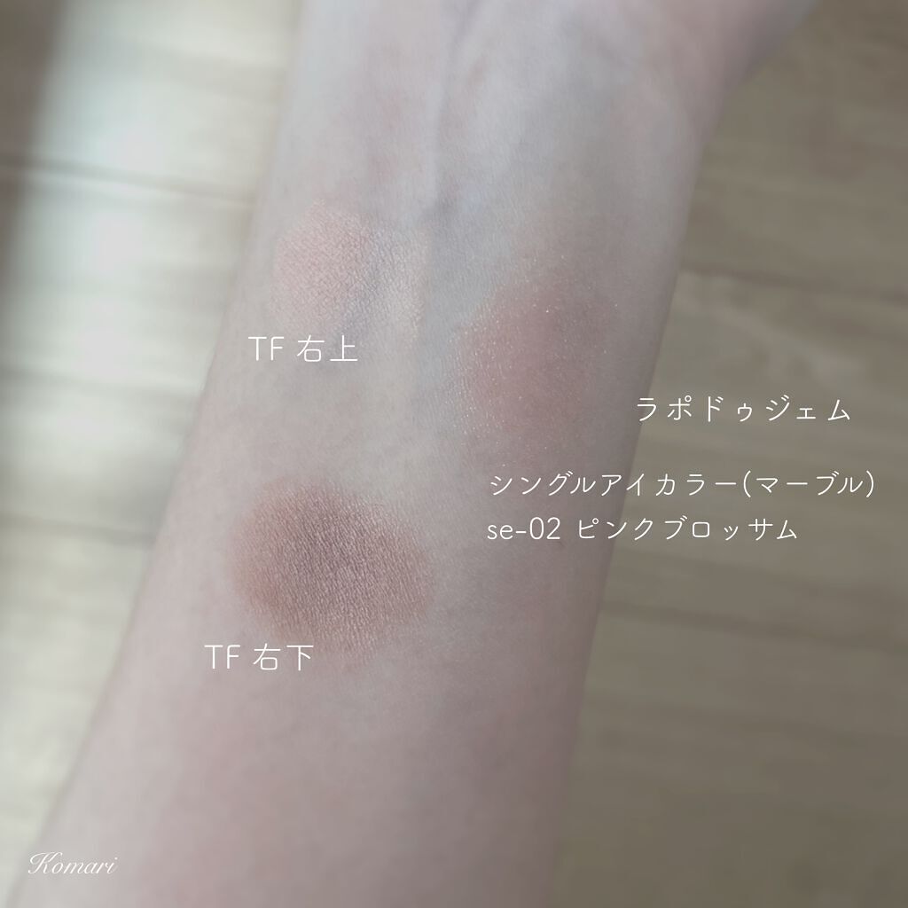 ⌘今日のメイクcolorlessメイク《howto》1.トムフォードローズプリズム右上のカラーをアイホール、下瞼に2.右下のブラウンをアイラインのように入れてぼかす3.煌めきを少しだけ足した買ったのでピンクゴールド系のラポドゥジェムのse-02ピンクブロッサムを下目頭に入れました私はサーモンピンク系は腫れぼったく見えるので、下瞼にのせるほうが好みですこういった透明感のある質感の淡〜いオレンジ色は、色白のブルベ夏タイプには重宝します☺️#カラーレスメイク#トムフォード#ローズプリズム#ラポドゥジェム