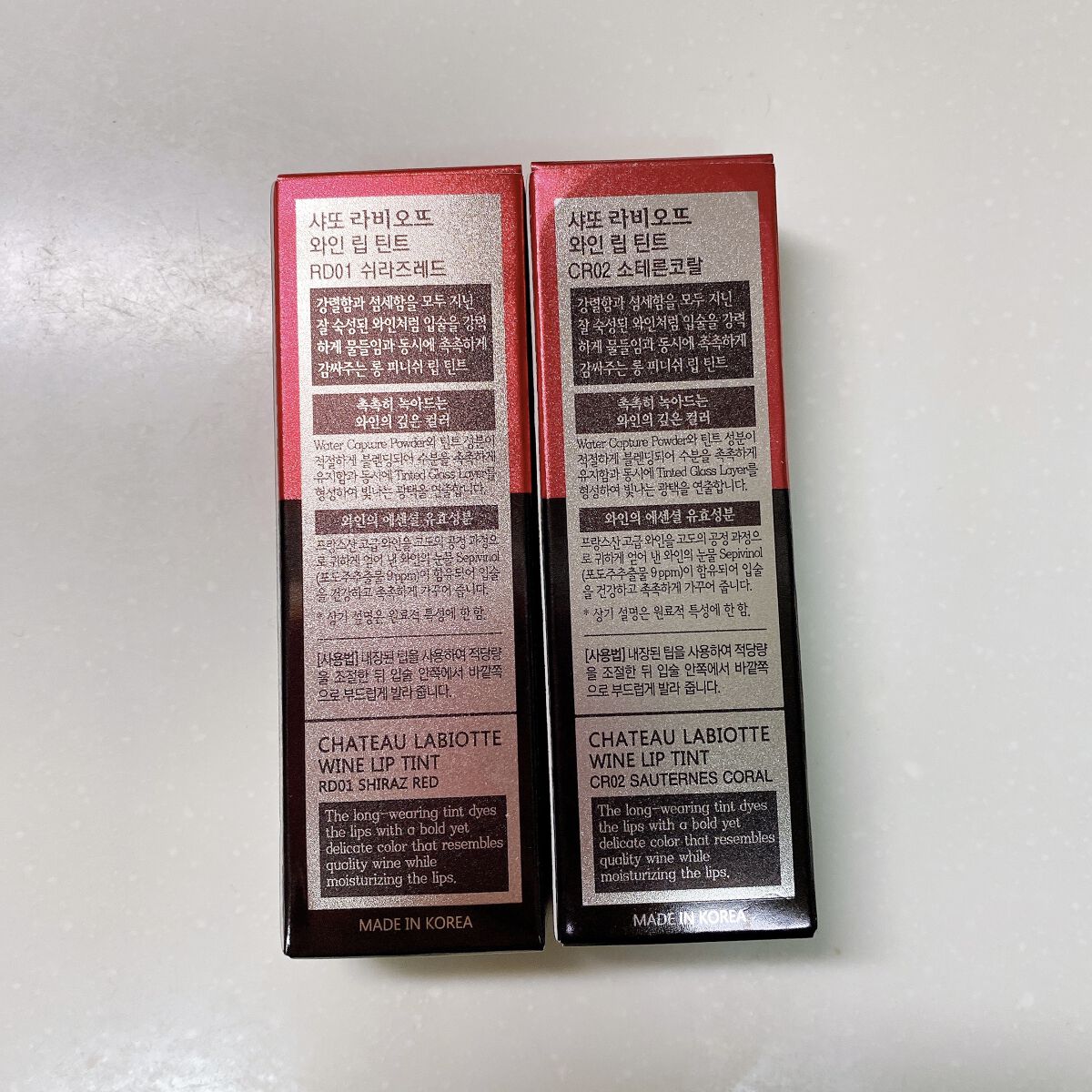 \LABIOTTEワインリップティント/CR02 ソテルンコーラルRD01 シラーズレッド大好きなLABIOTTEのワインティント🍷大好きなアイドルが使ってて好きなのもあるけどパッケージが天才すぎる🍾最近見かけなくなったけど大事にコレクション...