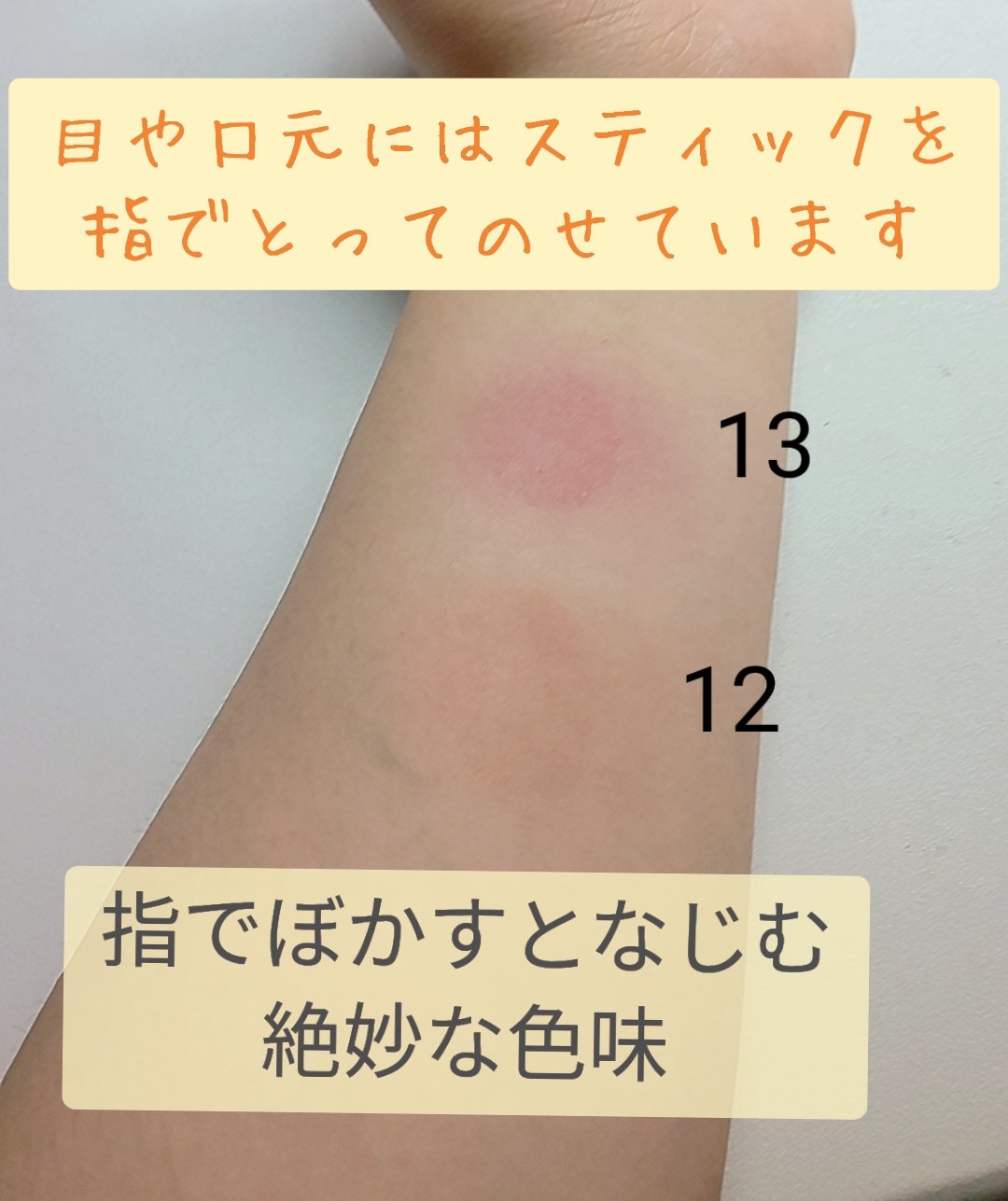 13番の色味が好きすぎて購入したところ、便利だし質感がお気に入りすぎて、カラバリを増やしました。 カラーバリエーション豊富で、自分の好みのカラーを選べるところも嬉しい点。 スティックタイプで持ち運びもしやすく、お泊まり時はポイントメイクを全てこれですることもできて便利です。 クリーム状なので伸びがよく、濃淡を調整しやすいのもポイントです。 携帯しやすいポイントメイク用品を探している人 パウダーチークに飽きてきた人 短時間でメイクをしあげたい人