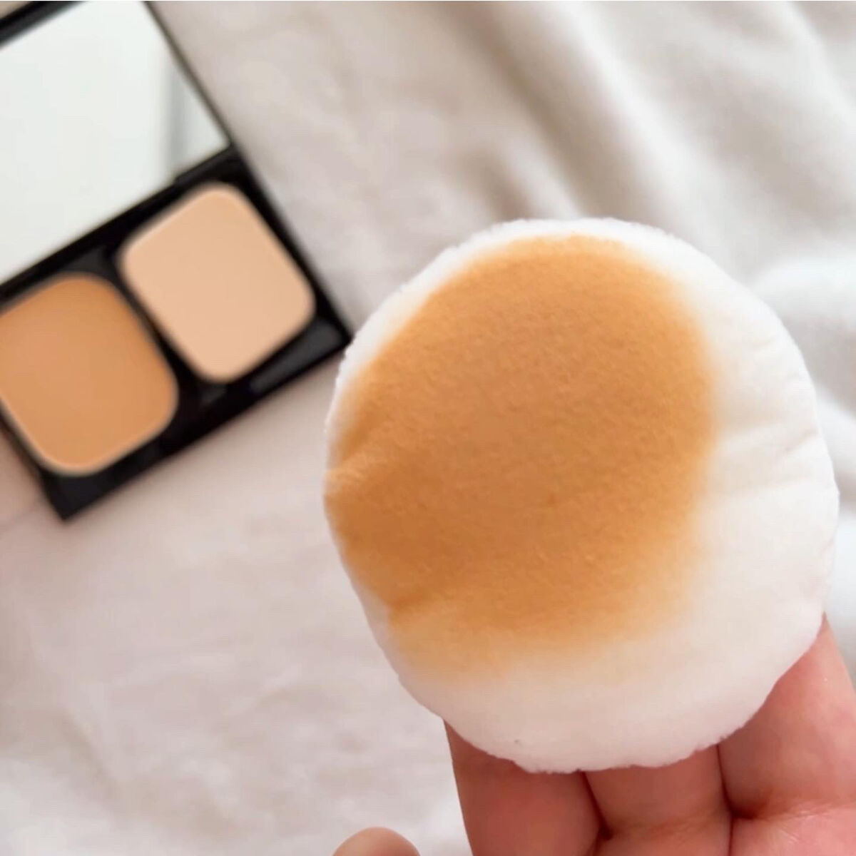 オイルが高配合されているので粉っぽさが感じられなくて、しっとりとした質感。 凹凸をなめらかにカバーしてくれてぴたっと肌に密着…! パウダーは崩れやすいイメージやったけど、こちらはマスクを外した時も綺麗な状態をキープできてた👏🏻 別売りのパフでふんわりつけると軽く仕上がるのでお気に入り♡ お化粧直しにも使いやすくてかなり重宝してます🫧