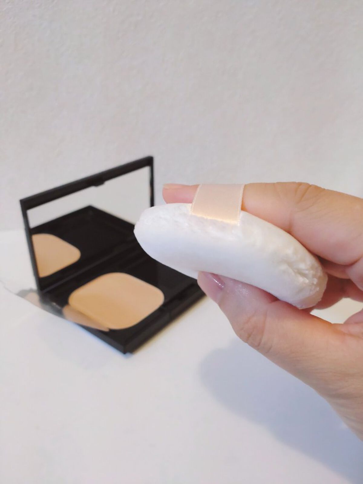 オイル高配合で、しっとりした粉質。 ピタッと密着して毛穴カバーしてくれるよ! 粉感もなくてなめらかにフィット😍 マスクにもつきにくかった! スポンジを使うとしっかりカバー、パフを使うとふんわりした仕上がりになるよ✨