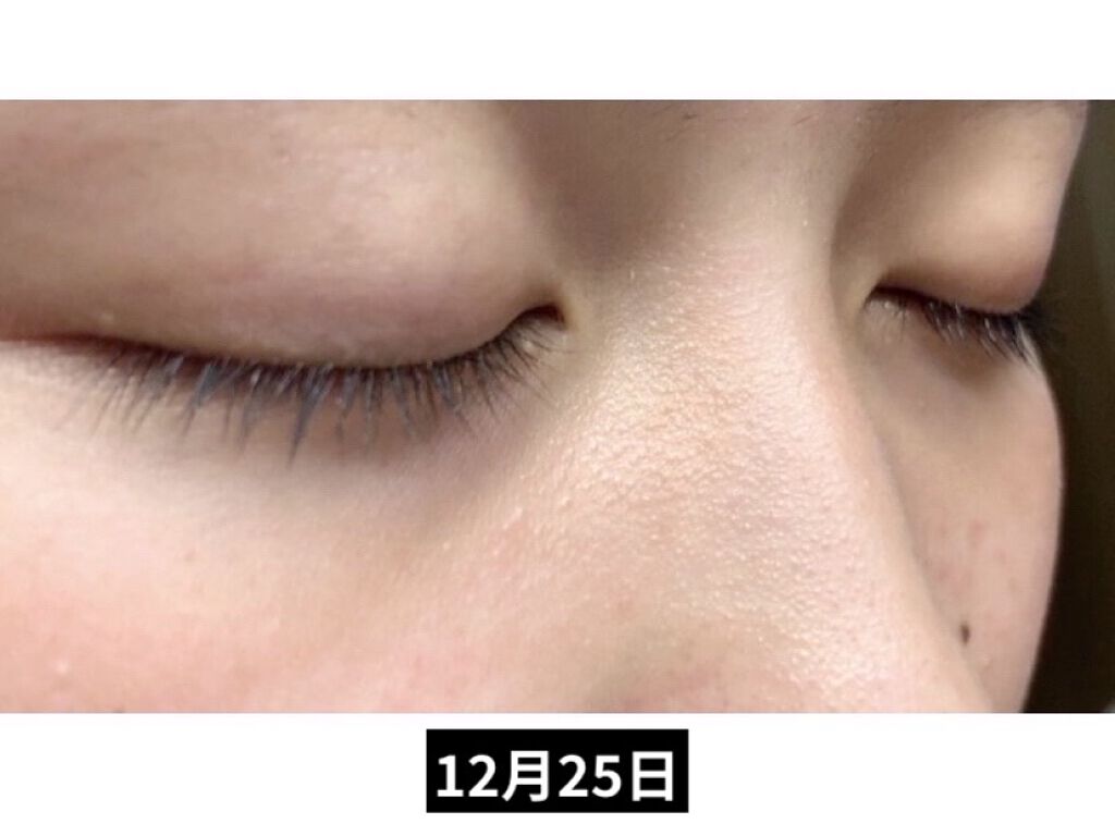 全体の長さが少し伸びてきました。目頭側の方が伸び率高めですね🙄 密度は変わってないけど、まつ毛にハリコシは出てきた気がします こちらの美容液は色素沈着が全くないです🥺