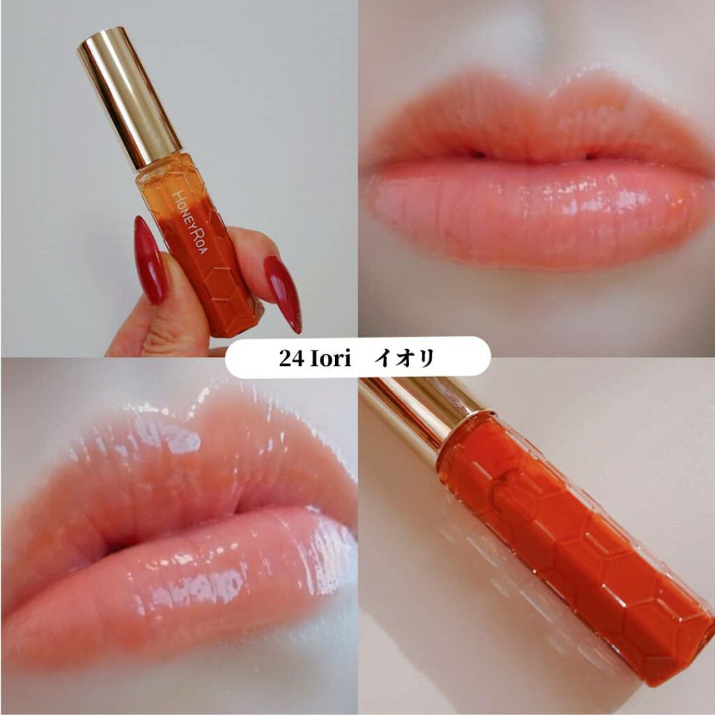 北海道産アカシア蜂蜜が使用されていて、とろーり濃密なテクスチャーなんだけど、唇へピタッと密着。まるでうるおいたっぷりの膜で唇をラッピングしているかのような使用感のグロスです。 塗るだけであっという間に唇がぷるんぷるん👀縦じわも消し去ってくれるよ!! 10月に発売された秋冬の新色は下記の3色💄どれもクリアな発色で可愛いよー!!