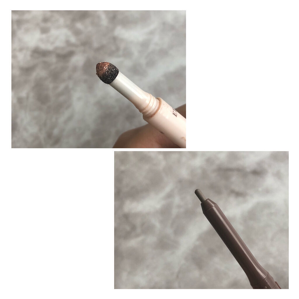 まず 、影を描くペンシルはとてもクリーミー でも柔らかすぎず描きやすい …! しかもこの透け感のある仕上がり!! 濃くなりがちな影も透明感を忘れずに 描くことができます 🥲🤍🤍 そして 、アイシャドウも可愛い!! スポンジになっていて 、直接涙袋をなぞると 程よくラメ感 、ツヤ感が出てくれて ぷっくり涙袋を作ってくれます ☺️🌟 色はあまり付かないのでナチュラルに 使うことができます ◎ ペンシルとアイシャドウの色味の 相性もバッチリですごく可愛い 😔💖 場所も取らないしかさばらないし 1本で完璧な涙袋メイクが完成するので 持っておいても損はないと思います 🔅