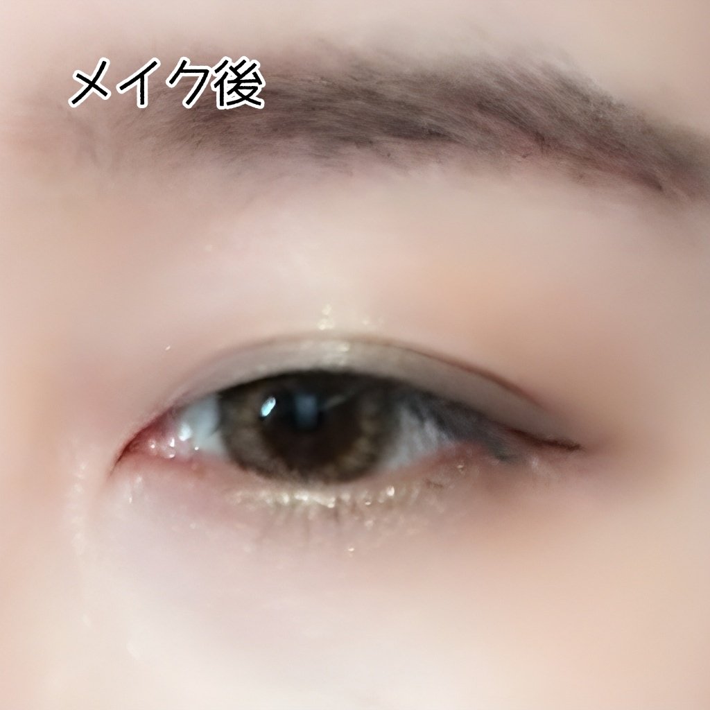 ほうじ茶ラテは思ったより明るく発色してゴールド系の華やかな瞳になりました! 麦の穂みたいなゴールドでフチがない分派手すぎず、品のある輝きをプラス。 特に瞳孔のくり抜き周りにある明るいアクセントカラーがパッと瞳を明るく立体的に魅せてくれます!