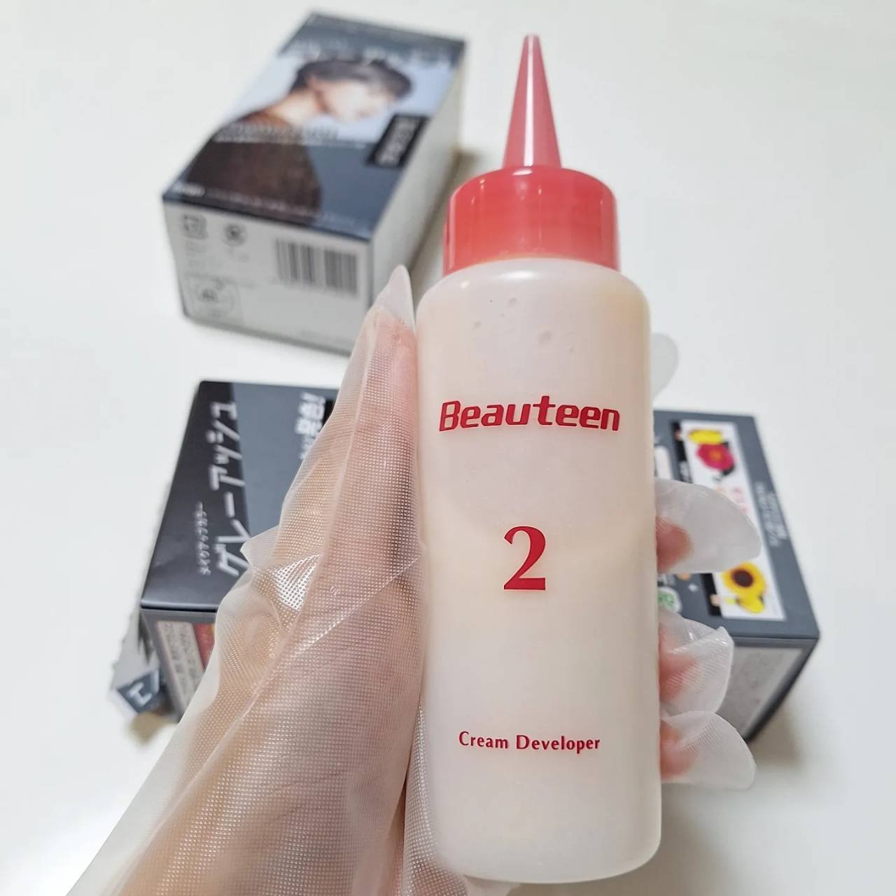 ヘアカラーを使ってみました。「ビューティーン メイクアップカラー」グレーアッシュラインナップは、全13色と豊富です。【セット内容】1剤2剤手袋ヘアカラー直後用シャンプーアフターカラー美容液【使い方】①1剤を2剤に加えます。②キャップをしめ、しっかり30回振って混ぜます。③乾いた髪全体に、混合乳液をたっぷりぬります。④髪全体をもみ込んで泡立てます。⑤25分ほど放置します。⑥洗い流したあと付属のシャンプー2回・コンディショナーをし、タオルドライ後、アフターカラー美容液で仕上げます。乳液のようなテクスチャーです。もみこむと泡立って、髪全体に行きわたりやすかったです。フレッシュフルーティーの香りです。カラー剤特有のにおいはなく、使いやすかったです。ヘアカラー直後用シャンプーつきです。洗い流し時の色落ちを考えたヘアカラー直後に適した処方なんだってラインナップが豊富だから、自分の好きな色を見つけてね。#PR#ビューティーン#セルフカラー#ハデ髪#ヘアケア#ヘアカラー#おうちカラー