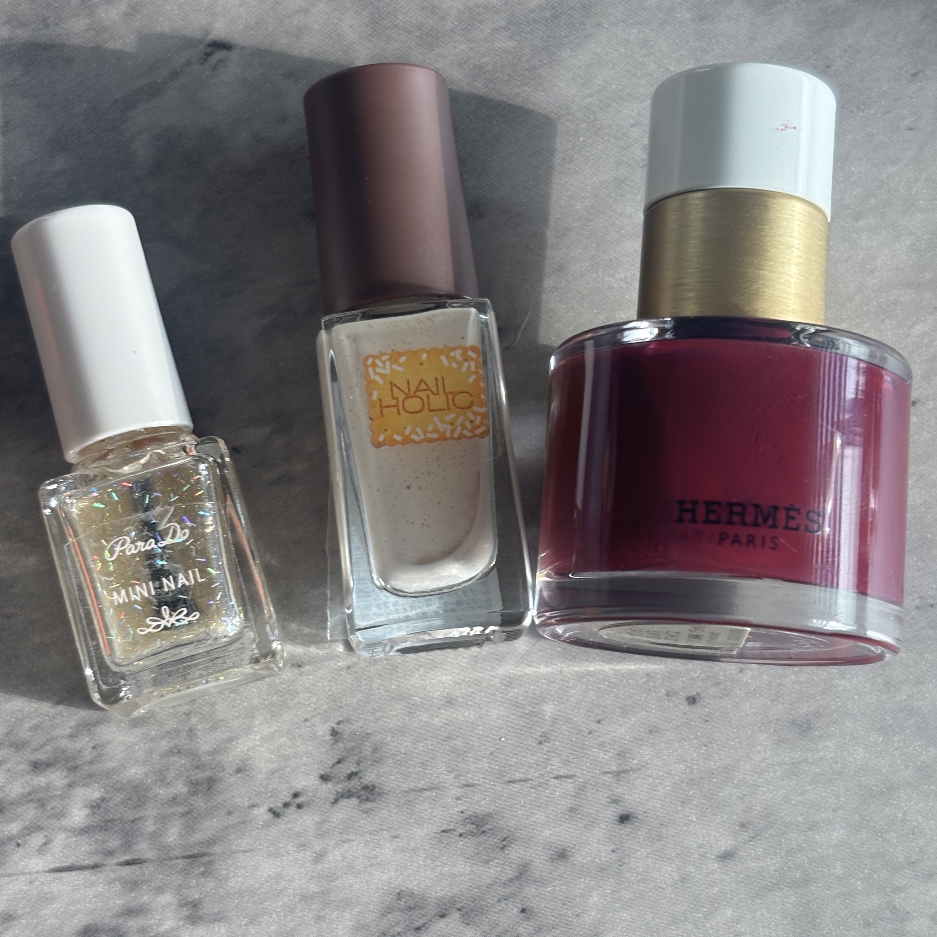 エルメス、デビューしました🥶 赤寄りのパープルみたいな可愛すぎる色( 💓∀💓) エルメスってもうなんか存在から違う😍 ネイルの香りしないのかなーって思ったらネイルの香りは普通にしましたが、色の発色や濃さ、塗りやすさ、やっぱりすごい✨ マニキュアの口に固まるようなこともなく、蓋の開閉もしやすいฅ(´A`)ฅ エルメスの店舗がないから、実際見に行けないけれども。。エルメスの製品を買うにまだ勇気がなくて。。 またネイルアレンジなどしましたら、投稿します( 💓∀💓) まきちゃんめちゃくちゃ可愛すぎたー♥️ まきちゃんの笑顔が大好き♥️