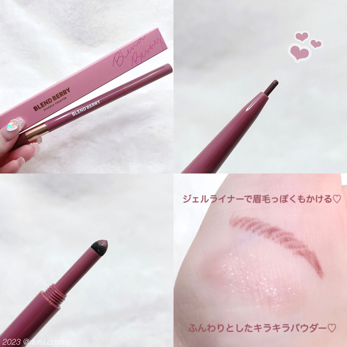 キラキラパウダーとジェルライナーの組み合わせが可愛い✨ BLEND BERRY スパークルクリエイター 全3色 アイライナーとキラキラアイカラーが1本になった2in1仕様で、単色使いや、アイライナーにアイカラーを重ねてキラキララインを楽しんだりと、さまざまな使い方で楽しめます。 ラメ感が気に入ったので、全色購入。 パウダーは伸ばしやすく、ラメがたっぷり。発色はあまり強ぬなく、ラメ感を楽しみたい方にはおすすめ。 ジェルライナーはやや硬めで、折れやすいので2mmほど繰り出すのがベスト。 ジェルライナーの落ちにくさはすごいです! 色の組み合わせはとっても可愛いです。 とくに涙袋をキラキラさせたい!という方には特におすすめです。