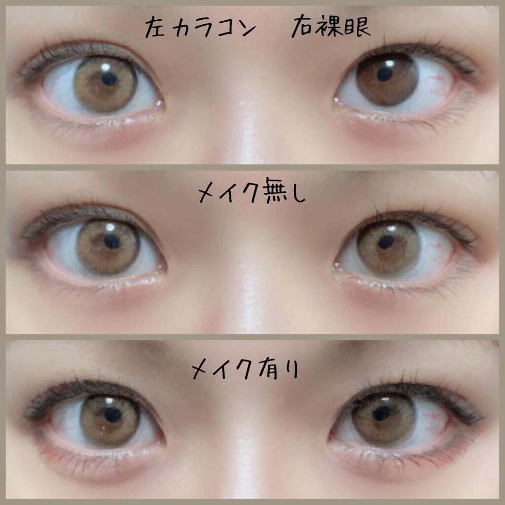 私は裸眼が茶〜こげ茶の間くらいの色なのですがこのカラコンをつけると瞳がトーンアップしてまるで透けて見えるくらい透明感抜群になれるんです(T ^ T)♡♡ 派手すぎないのでカラコン感はあまりなくてナチュラルに盛ってくれます🙆🏻♀️ シンプルなデザインと馴染みやすい色味なのでどんなメイクにもぴったりでとっても使いやすいんです🤤✨