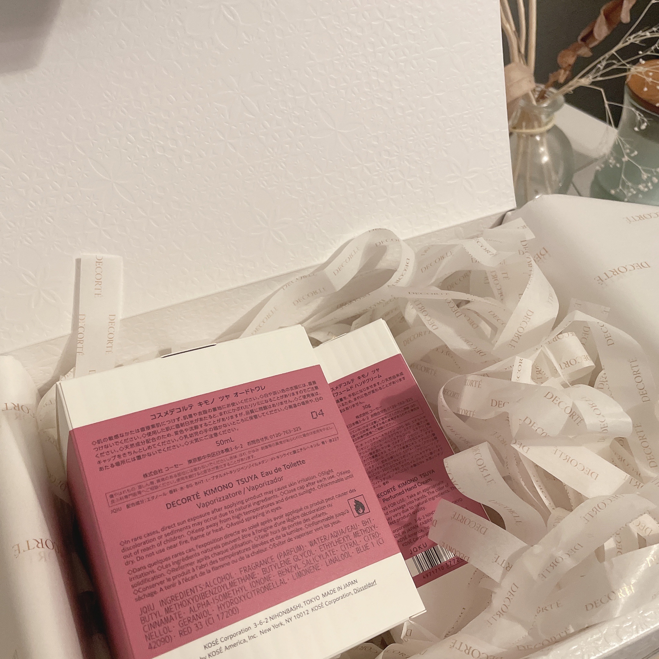 #初買いコスメレビュー・DECORTÉ/キモノツヤオードトワレ50mL[本文]前回オフライン店舗で友達と香り違い(?)の15mlバージョンを買って、実際に使ってみてお気に入りの1つになったから、家で使う用に大きいサイズの50mlタイプを買った(^-^)Vアットコスメショッピングの2025年初売りセールの期間にポチッっとした✌️ローズ?ボルドー?系のリボンが本当にオシャレ。部屋に置いておくだけでもインテリアとして良さそう✨15mlタイプを使い切ったら、自分の手持ちのアトマイザーに詰め替えて使う予定🗓✔️.つけたてはツンッとしてるが、オードトワレだからなのか、柔らかく香る。香りからは、“不思議”とか、そーゆーワードイメージが浮かぶ。DECORTEのブランドロゴとマークがデザインされていて、テンション上がる⤴︎⤴︎同じシリーズの他の香りにもチャレンジしてみたい![関連投稿URL]・https://lipscosme.com/posts/7096766?_t=zLqY&_r=q4RMgJ15ml購入品投稿[購入日]2025年1月1日[発送日]2025年1月6日[届いた日]2025年1月7日12時17分[購入場所]アットコスメショッピング2025年初売りセール[投稿作成日時]2025年1月11日17時16分[ハッシュタグ]#HITOMIMMMの購入品#アットコスメショッピング購入品#香水購入品#フレグランス購入品#アットコスメショッピング#初売り購入品