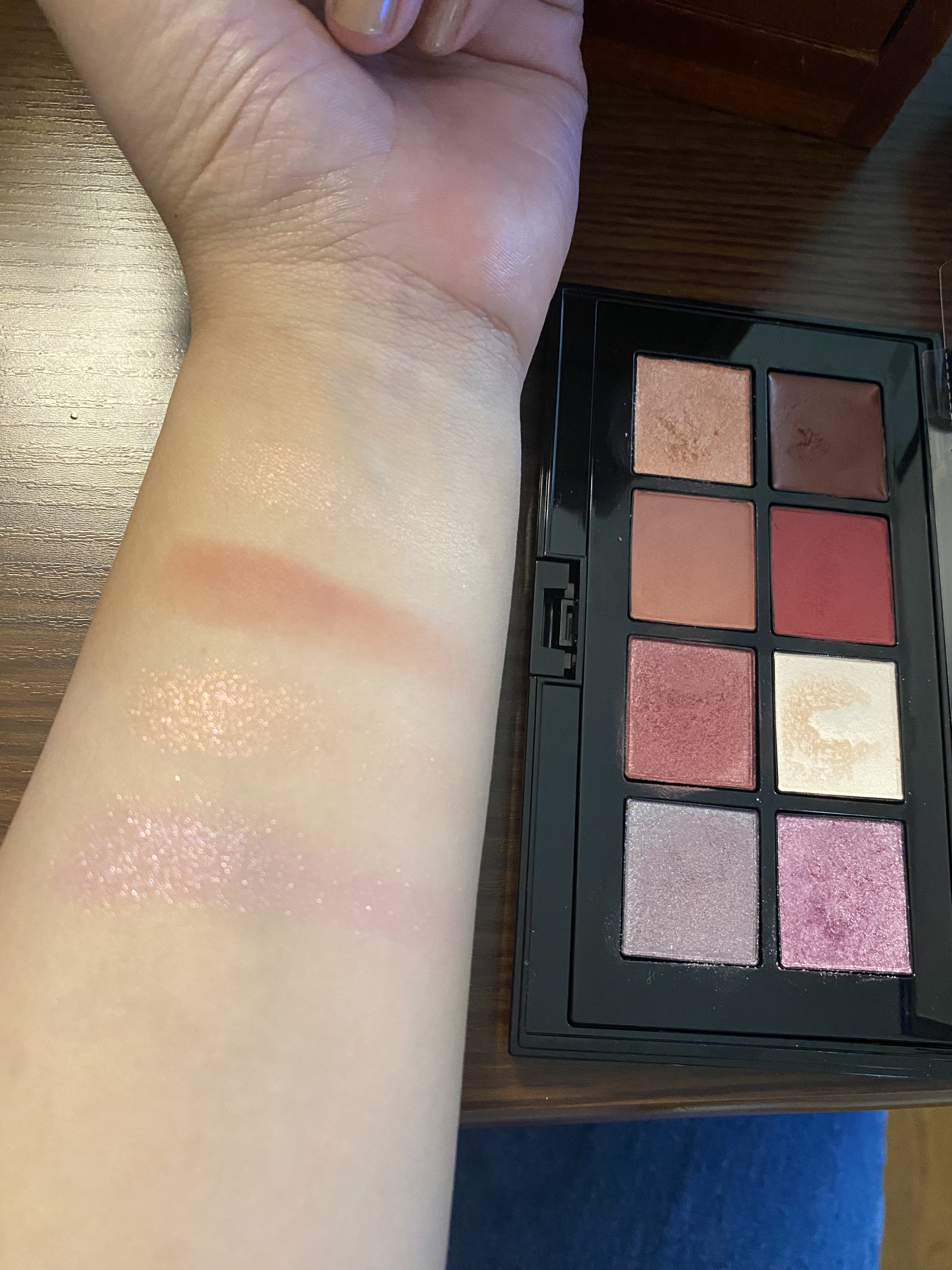 全てこのコレクション限定カラーで、重ね方次第で表情が変わるピンクニュアンス。 パール、スパークル、マット、クリームの質感が詰め込まれたパレット。 マットのワインレッドが、一見難しそうに見えるけど、肌に重ねると実は使いやすくて可愛い!! フンワリ乗せると、まぶたにサッと赤みがさして血色感ある潤みアイに。 気分に合わせて青みピンクラメやローズパールを指でタップして表情を変えて毎回楽しくメイク出来る◎ 冬はこんなパレットに青みピンクのリップで、思いっきりピンクを楽しみたい!!