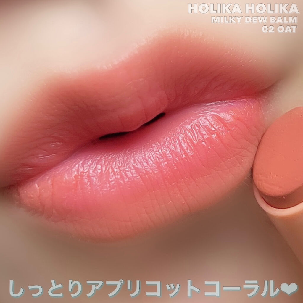 HOLIKA HOLIKAから発売されているミルキーデュバームがただただ最強すぎました👏 リップバームと聞くと、艶っぽいけど少しベタつきがある物が多いですがミルキーデュバームはしっとりとしているけど少しマットなリップバームなのでぴたっと密着😚✨✨♥️ 色味も柔らかいカラーばかりで塗るだけで唇が瞬時に可愛くなる☺️! カラーステイ力が高いので飲食しても落ちづらいのがGood🥺 リップバーム欲しいけど、ベタつきが苦手だったという方には特にオススメしたいです☝️ 香りもグレープフルーツのような爽やかな香りなので癒されます🍀