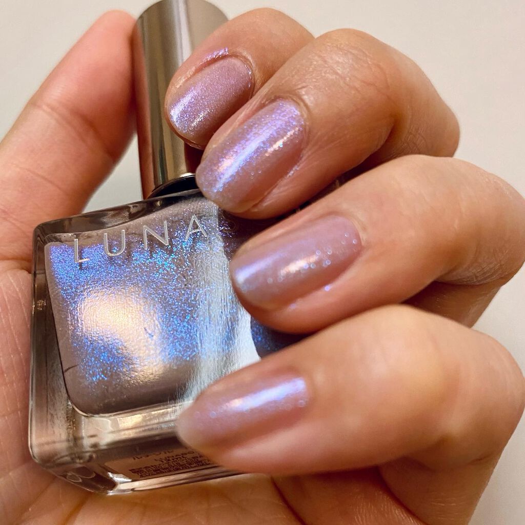LUNASOLネイルポリッシュEX18 AuroraMauve 2度塗りです青ラメが美しいです⭐️...
